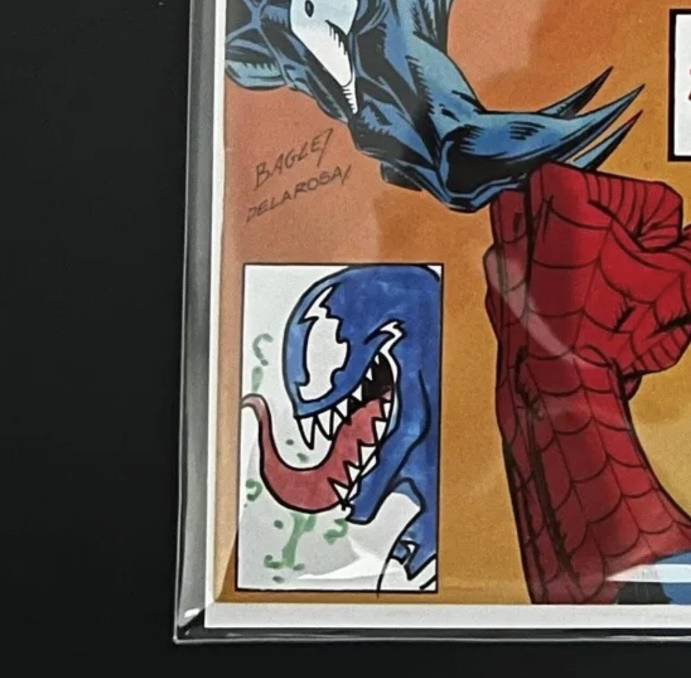 This unique and highly collectible Venom: Lethal Protector comic book variant is a must-have for any fan of the Marvel universe. Featuring the iconic characters Venom and Spider-Man, this single issue comic is signed and remarqued by legendary artist Sam Delarosa, adding an extra special touch to this already rare item. With a 9.8 Near Mint/Mint grade, this comic book is in top condition and perfect for display or adding to a collection. The stunning cover art by Delarosa and Mark Bagley is sure to catch the eye of any comic book enthusiast, and the details on the unit of sale, format, language, and other important aspects are all provided in the accompanying information. Don't miss your chance to own this incredible piece of comic book history.