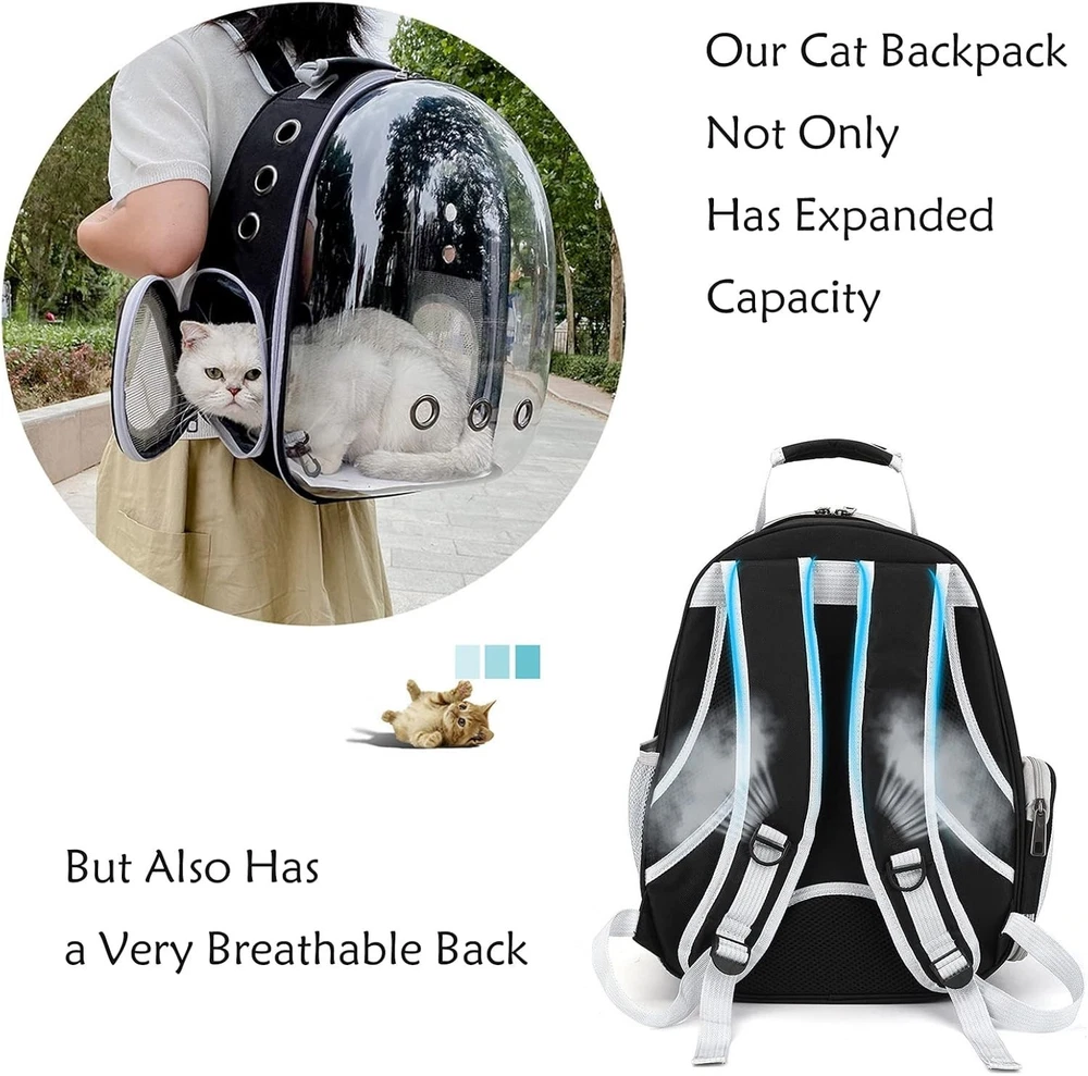 This pet backpack is a game-changer for traveling with my cat! The expandable design gives her extra space to move around, and the clear bubble lets her see everything while staying safe. The ventilation keeps her cool, and the sturdy straps make it comfortable to carry. Lightweight yet durable, it’s perfect for hikes, vet visits, or just exploring the city. My cat feels secure, and I love how easy it is to use. Highly recommend for pet owners who want a stylish, functional carrier!