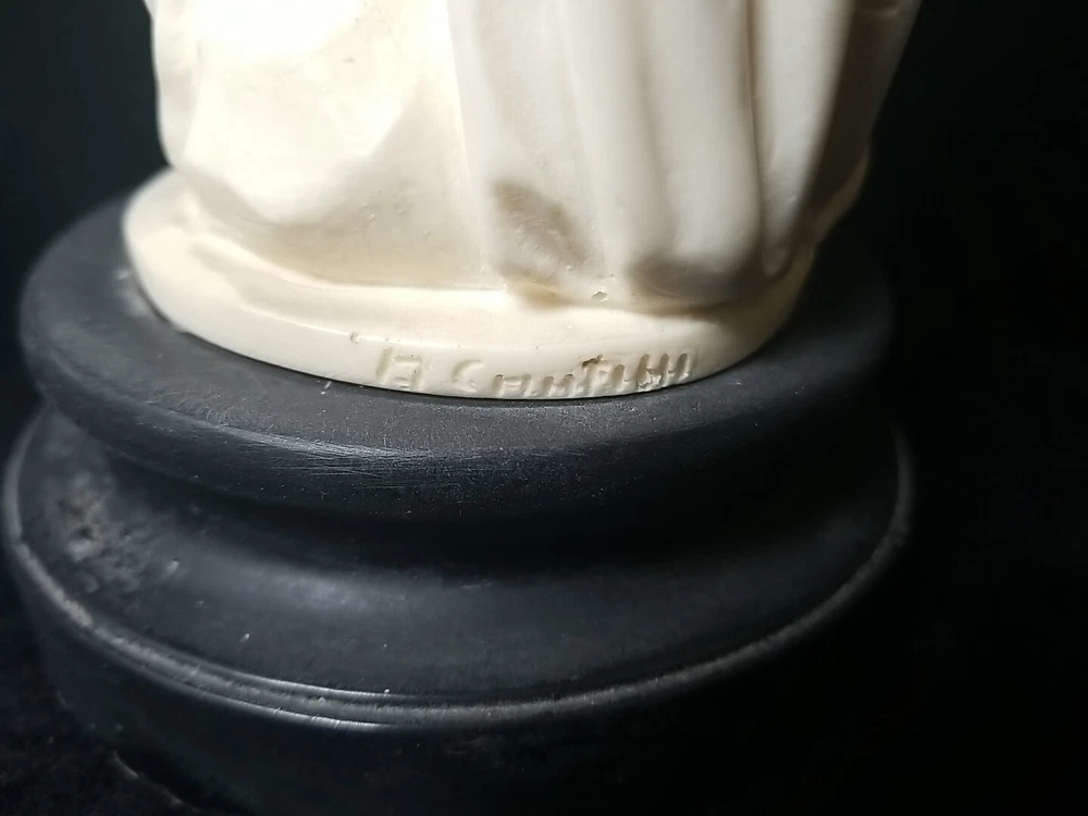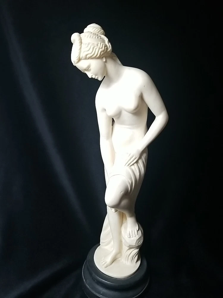 The little toe on the left foot is incomplete. Not noticeable unless closely inspected. No other chips cracks or repairs.
