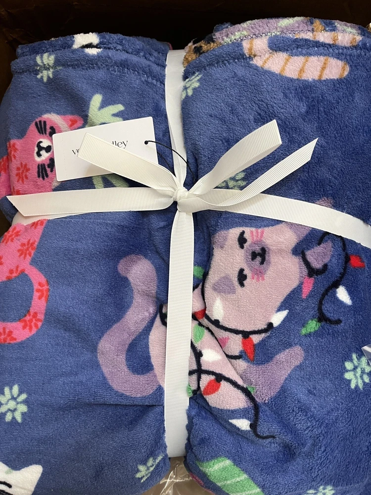 PRIORITY SHIPPING AVAILABLE. Please message seller if interested. This Vera Bradley throw blanket is perfect for any cat lover. The blue fleece material is soft and cozy, making it a great addition to any bedroom. The rectangular shape measures 80x50 inches, making it large enough to drape over the end of your bed or snuggle up with on the couch. New with tag Smoke free home Thanks for looking