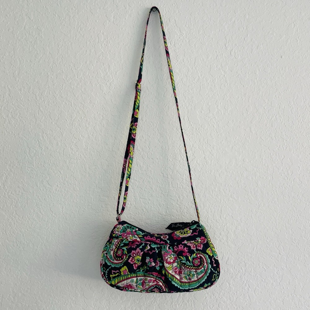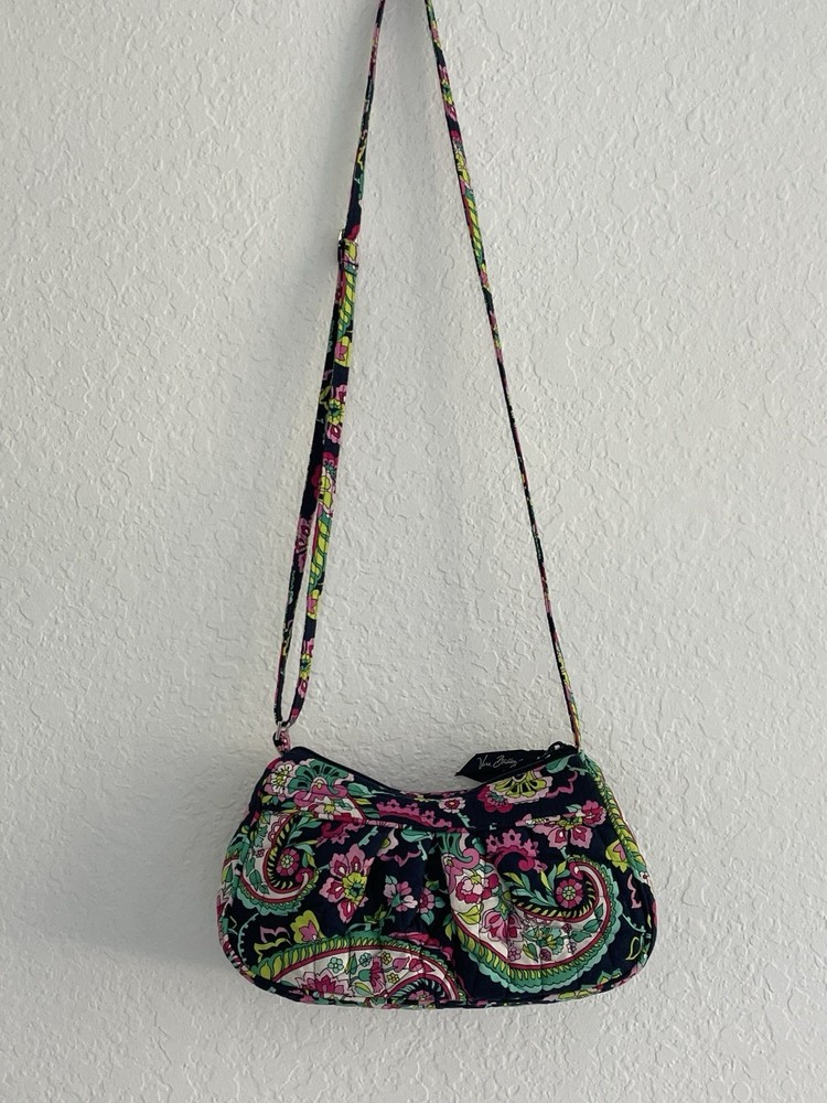 The Vera Bradley Petal Paisley Frannie Crossbody is a stylish and adjustable crossbody bag designed for women. Featuring a vibrant paisley pattern in multicolor, this bag is made from durable cotton material. The zip closure and multicolor cotton handle/strap add convenience and versatility to this chic and fashionable accessory from Vera Bradley's Frannie product line. Perfect for everyday use or special occasions, this crossbody bag is both functional and trendy, making it a must-have for any fashion-forward woman looking to stay organized in style.