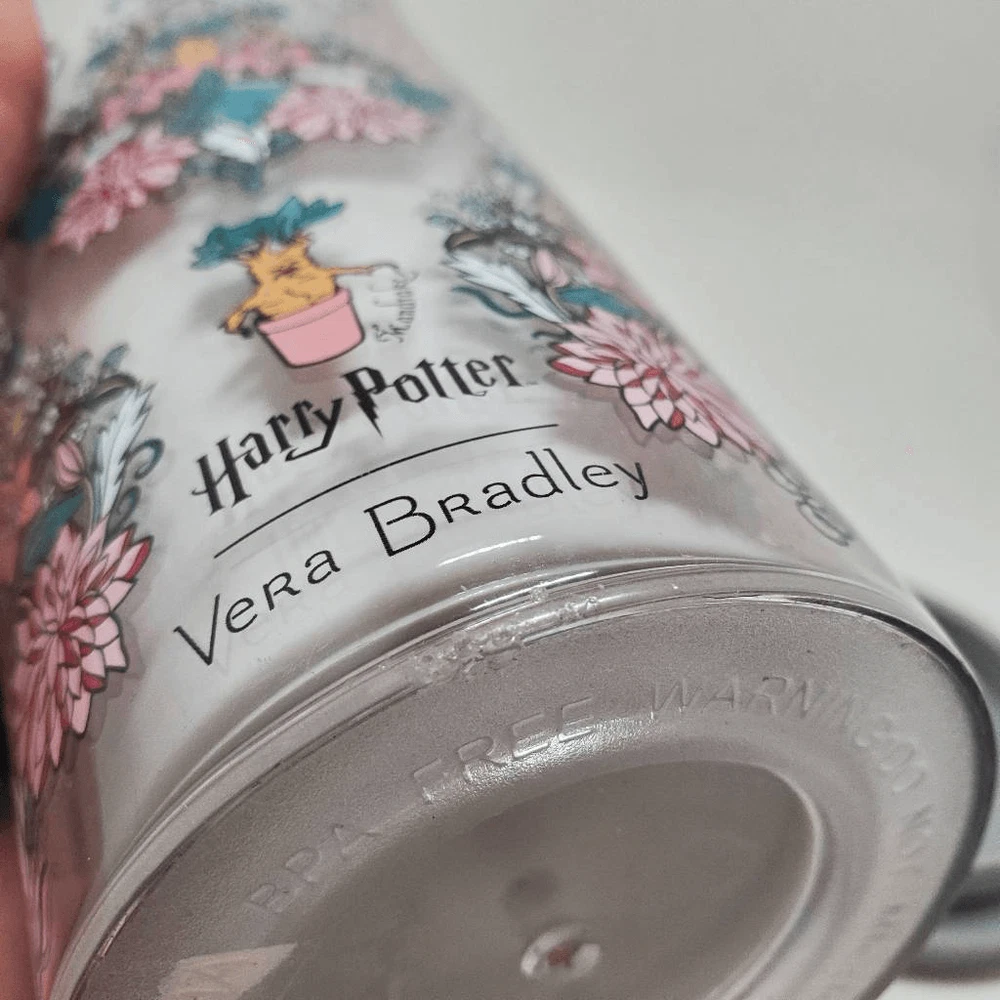 This Vera Bradley Harry Potter tumbler is perfect for fans! The Herbology design is gorgeous, and despite minor wear like small scratches and a tiny chip (shown in pics), it's still in great shape. Holds drinks well, looks cute, and feels sturdy—love the magical touch!