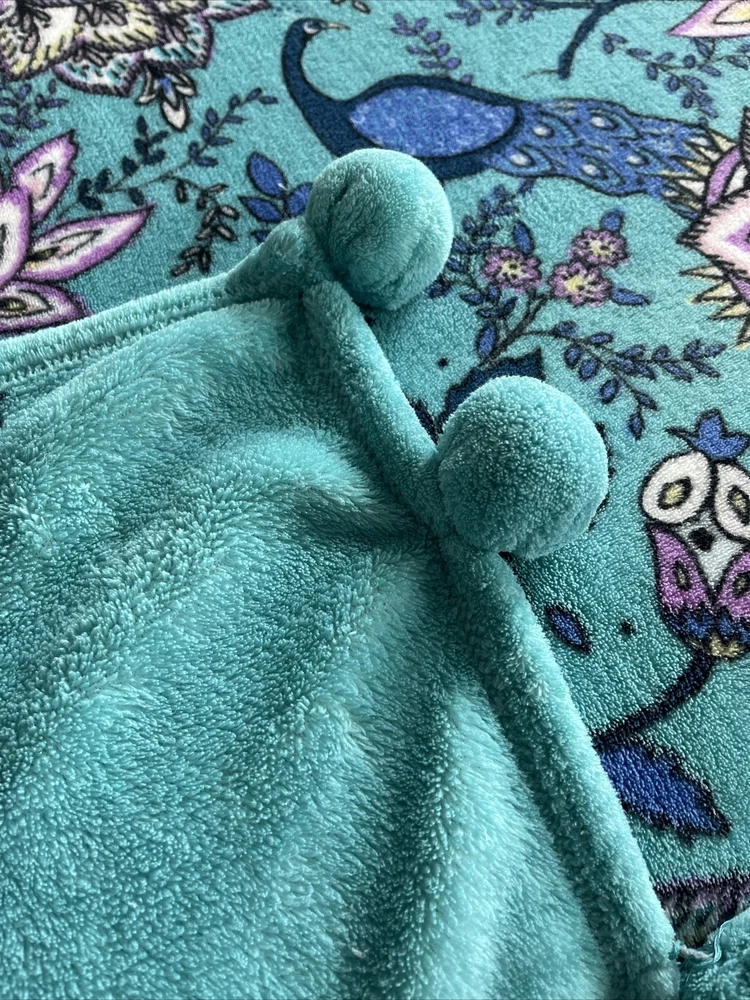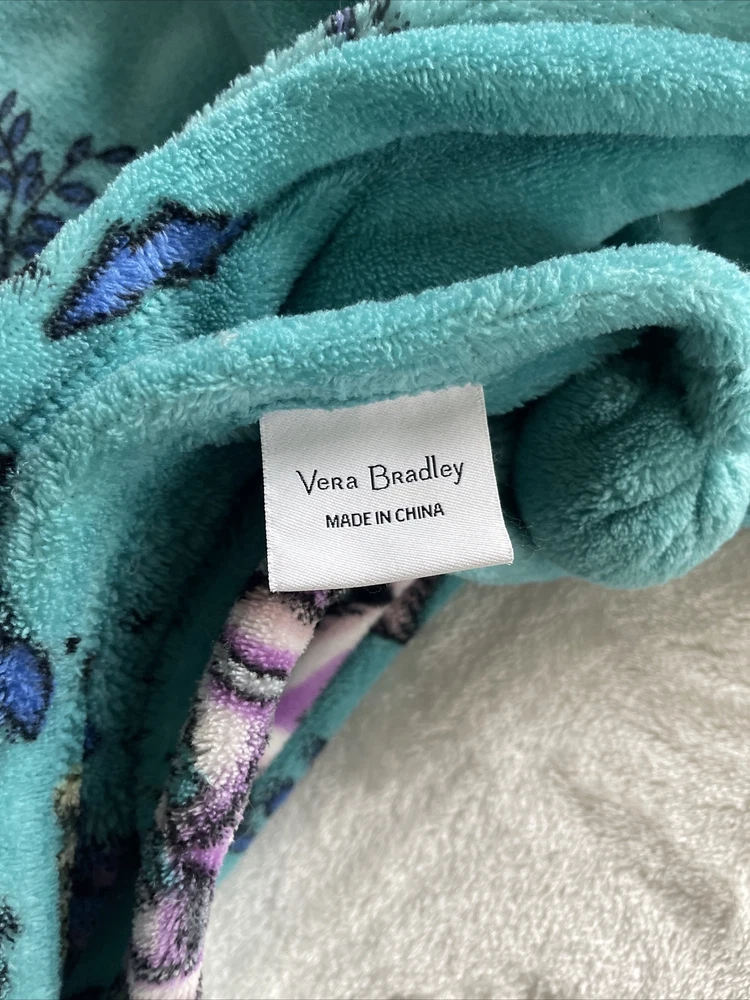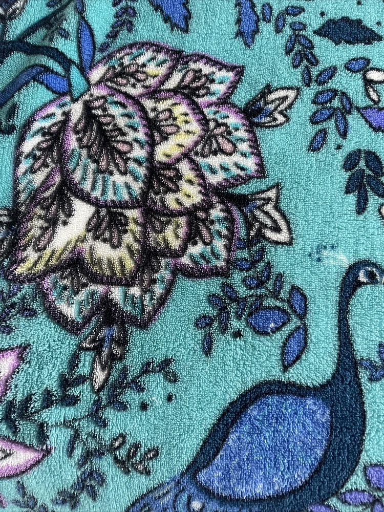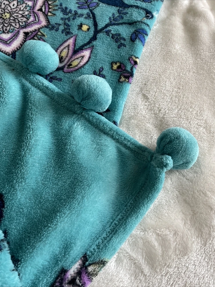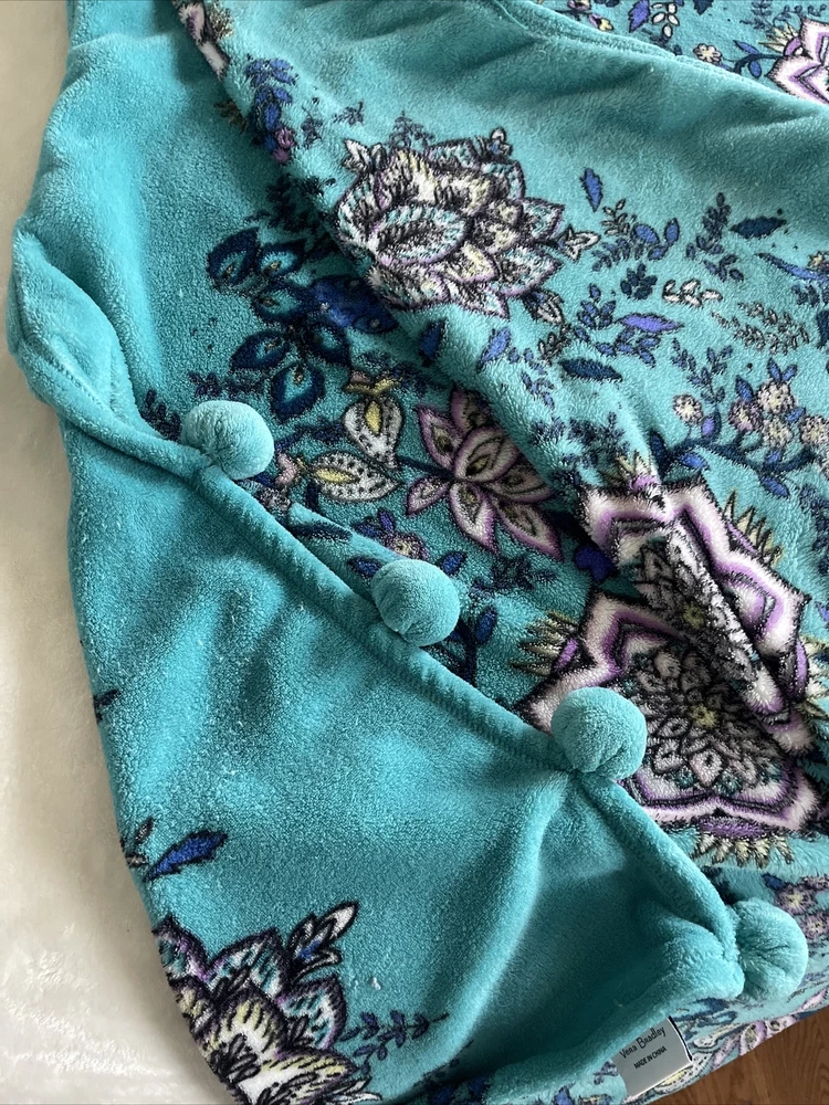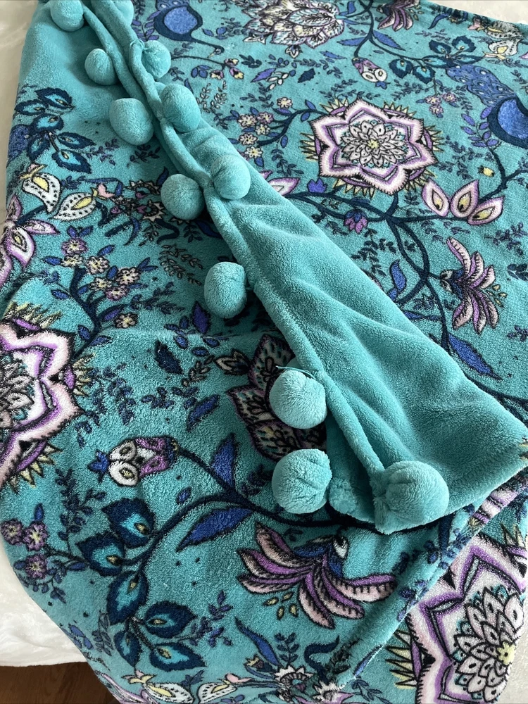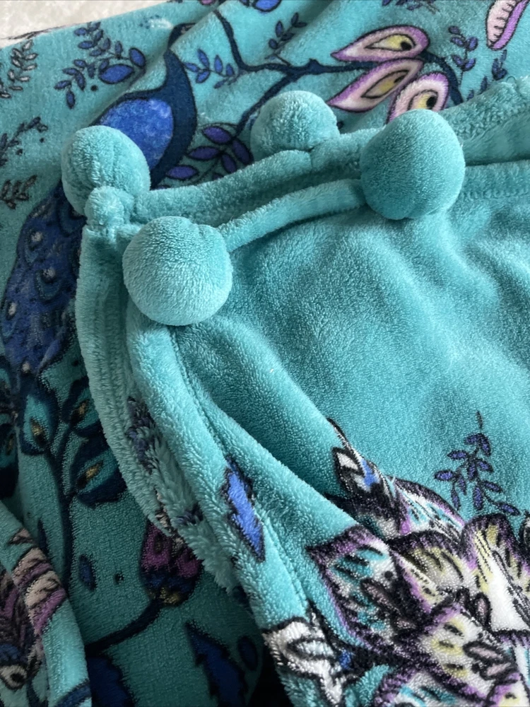 Vera Bradley Peacock Garden Fleece Throw Blanket Medallions Floral Tassels 50x80