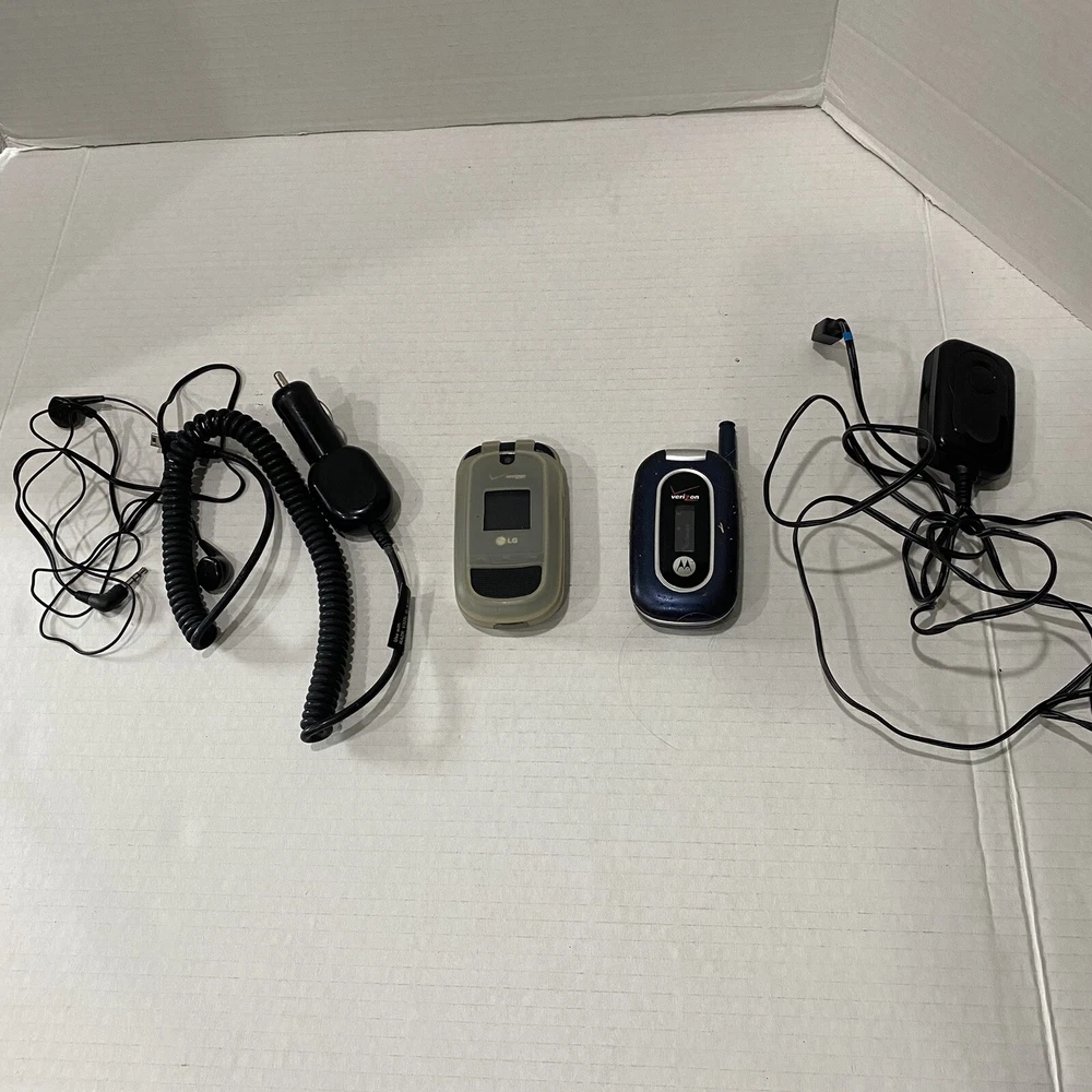 Pre owned! Not unlocked! Motorola is a little sticky needs a good clean! Both phones power on! No original box or paperwork for phones! Comes with some accessories! Motorola comes with power cord and LG phone no power cord! Please look at all photos!
