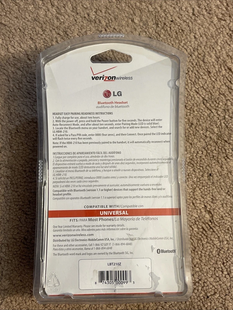 Verizon Wireless LG Bluetooth Headset Cordless Mobile Phone Universal LBT210Z. Condition is New. Shipped with USPS Ground Advantage.