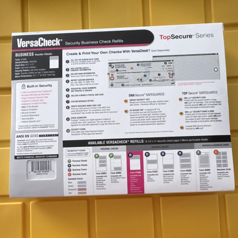 VersaCheck TopSecure Series Business Voucher Checks #1000 250 Sheets