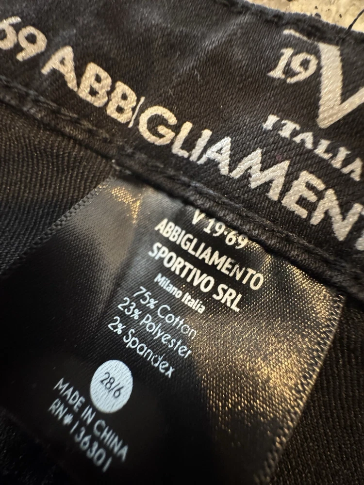 Super cute and in excellent preowned condition!! Measurements in photos are estimates only as garment laid flat. No Tears or rips. Be sure to check all photos. Buyer is responsible for reviewing all photos for condition. I do my absolute best to find any flaws prior to listing, and always disclose any that i do find. With that said, there may still be flaws present that were missed unintentionally by human error. All of my items are carefully inspected then stored safely after photos. This ensures you receive the item in the same condition it was photographed. The Versace 19-69 Abbigliamento Sportivo Srl Italia Side Rope Black Jeans are a stylish pair of skinny jeans in a size 6. Made of a cotton blend denim fabric, these jeans feature a unique blue side rope detail for added flair. With a slim fit and a mid-rise of 8.5-10.5 inches, they have a 28.5-inch inseam and a dark wash finish. Perfect for all seasons, these Versace jeans exude a mix of festival, rock, bohemian, and retro themes with a touch of urban flair, making them a versatile and trendy addition to any wardrobe.