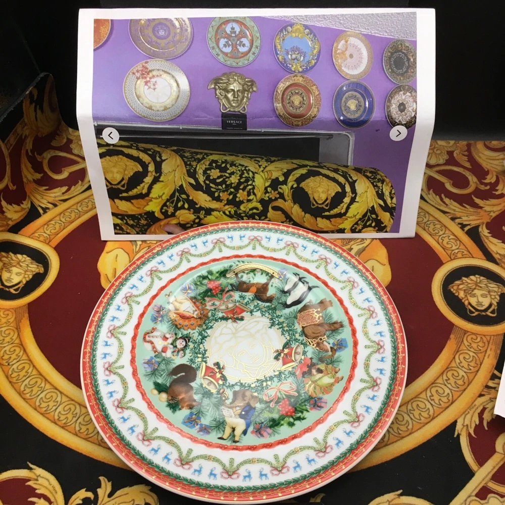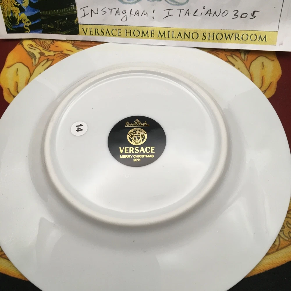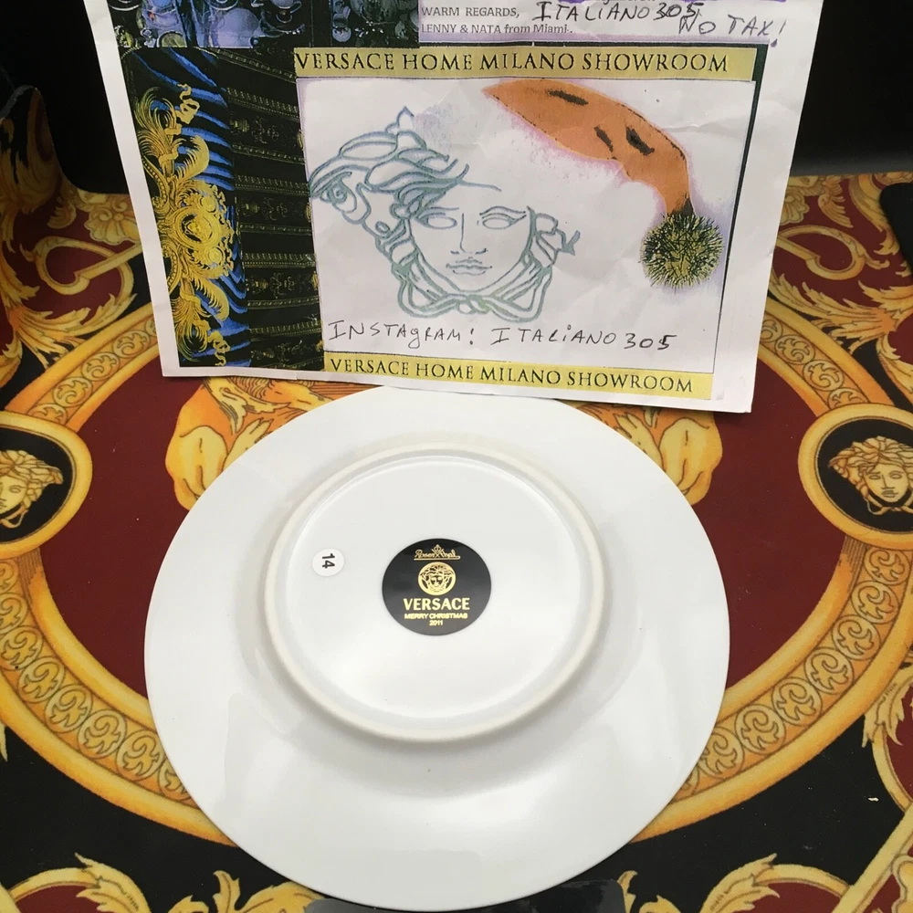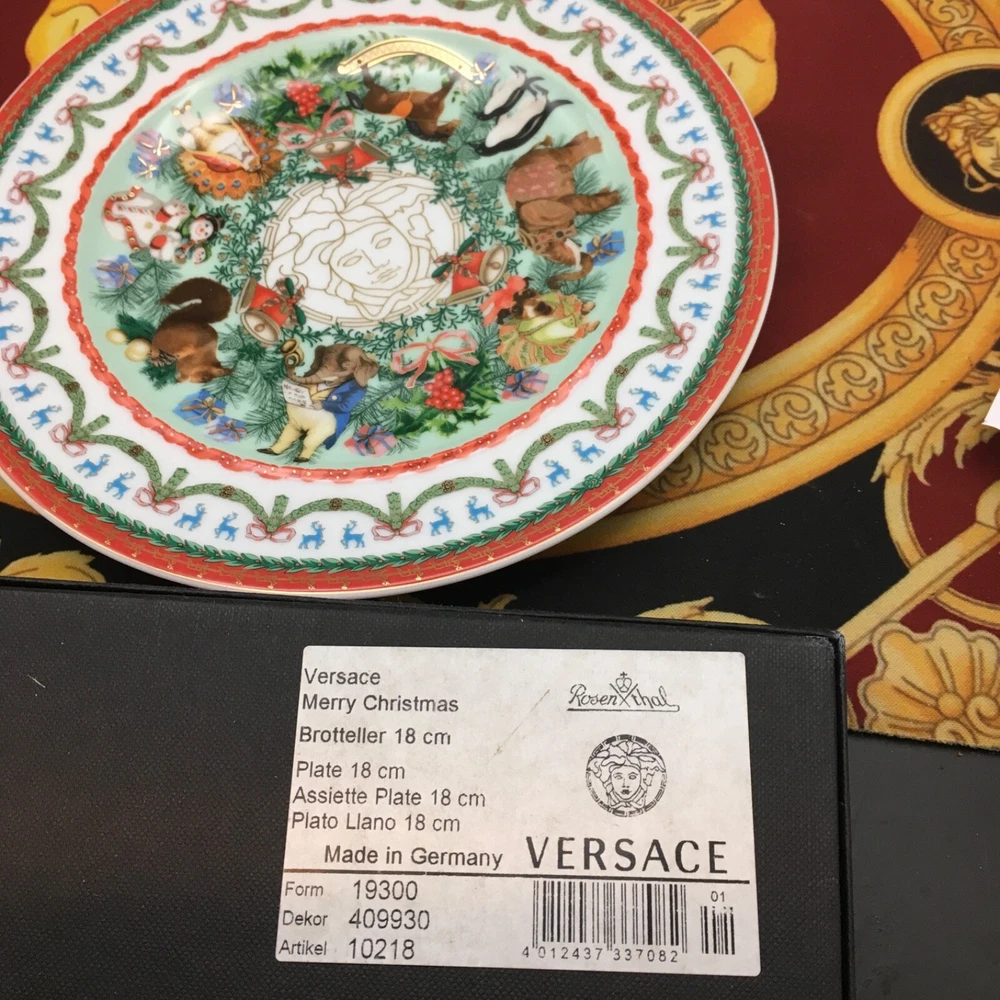 1 VERSACE MERRY CHRISTMAS PLATE celebrating YOU CAN USE IT ALSO FOR DESSERT /SALAD 7" size by Rosenthal BRAND NEW ORIGINAL in VERSACE box We have all Versace home goods since 1993 No low offers please >>>>>> INSTGRM VERSACECOLLECTOR305 By Versace DESCRIPTION Designed in 1996