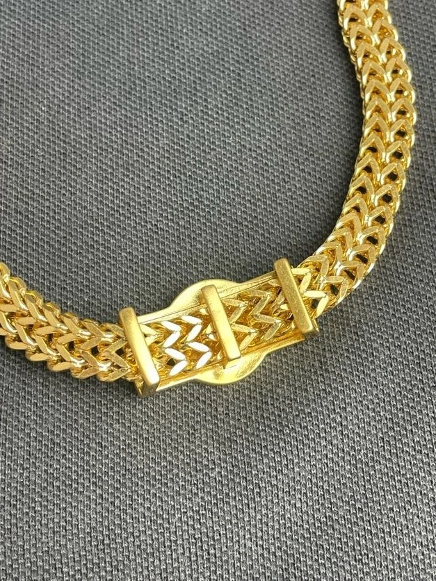 Stunning Vintage Jewelry Piece This unique and exquisite vintage piece is a timeless addition to any collection. With its charming Gold Plated and elegant Gold , this jewelry embodies classic sophistication and style. Material: Gold Plated Size: 33 Cm Color: Gold Whether you're looking to complement your daily look or add a touch of elegance to a special occasion, this vintage jewelry piece is perfect for you. Each item in our collection is carefully curated to ensure the highest quality and authenticity. Note: As a vintage item, slight imperfections may be present, adding to its unique character and charm. Care Instructions: To maintain the beauty of this vintage piece, avoid exposure to harsh chemicals, and store it in a dry place when not in use.