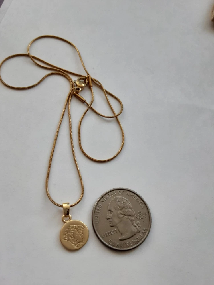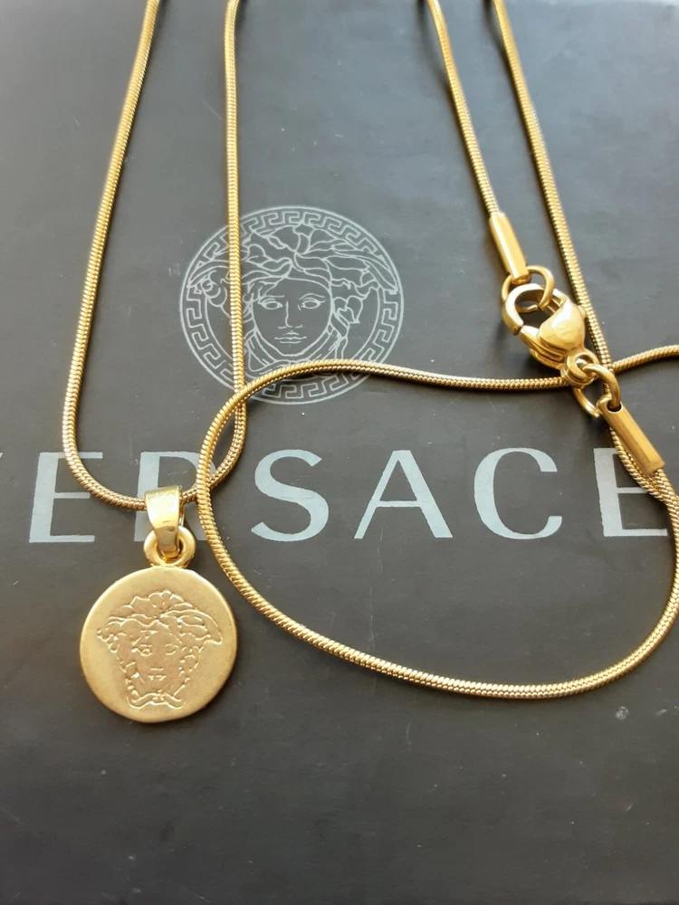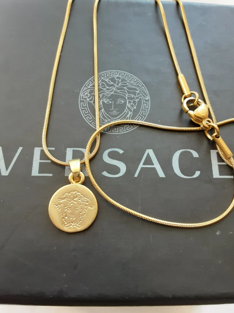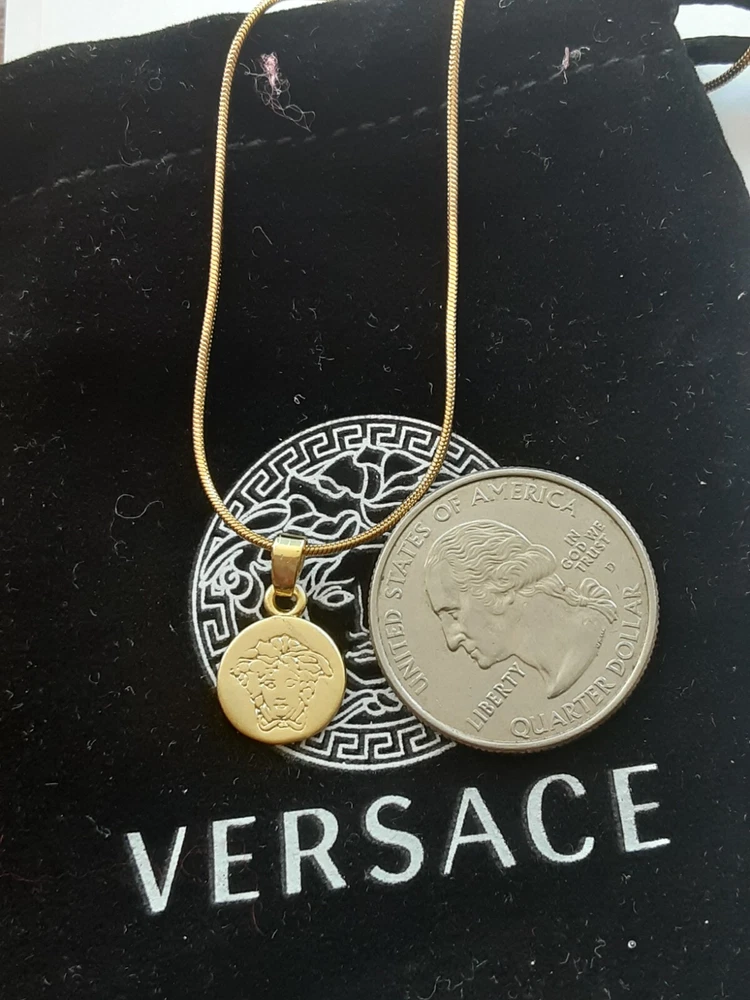 Versace small pendant Color : gold / 🥰 Signature Head of Medusa Size chain : 0,6 inch small Size chain : 18.5 inch Without box Made of metal Unisex Signature Pre - Owned , Looks Like New!