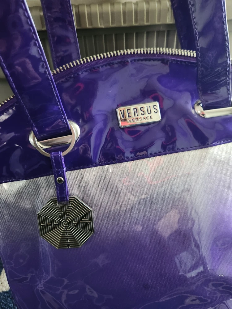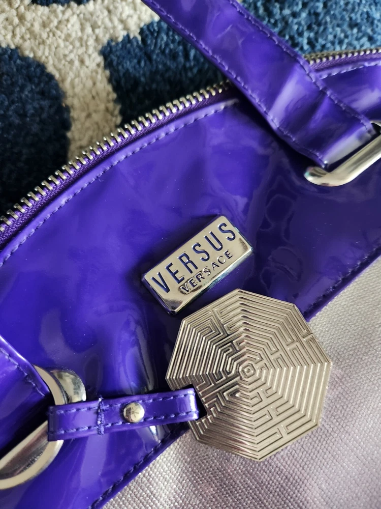 Versace Versus Handbag Tote 14" x 12" Purple Silver. Shipped with USPS Ground Advantage.
