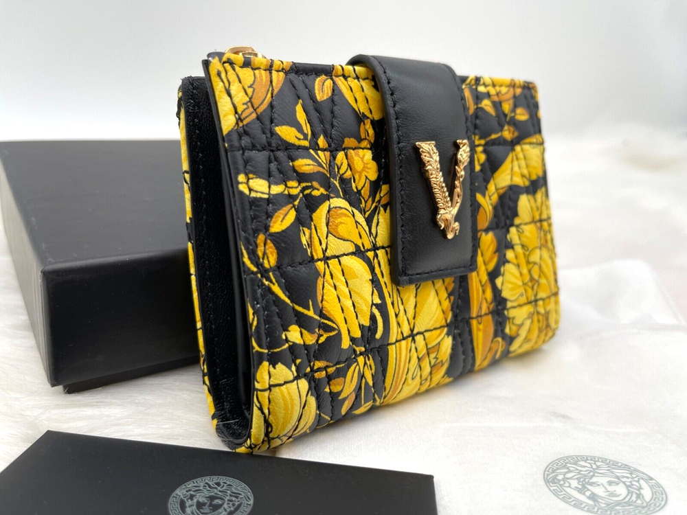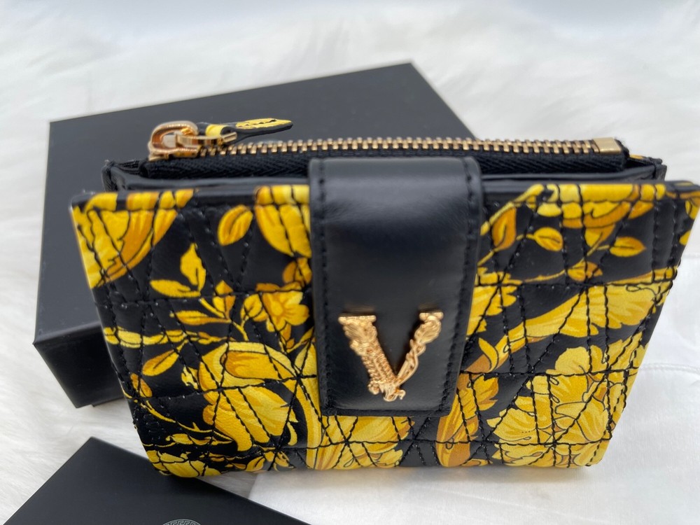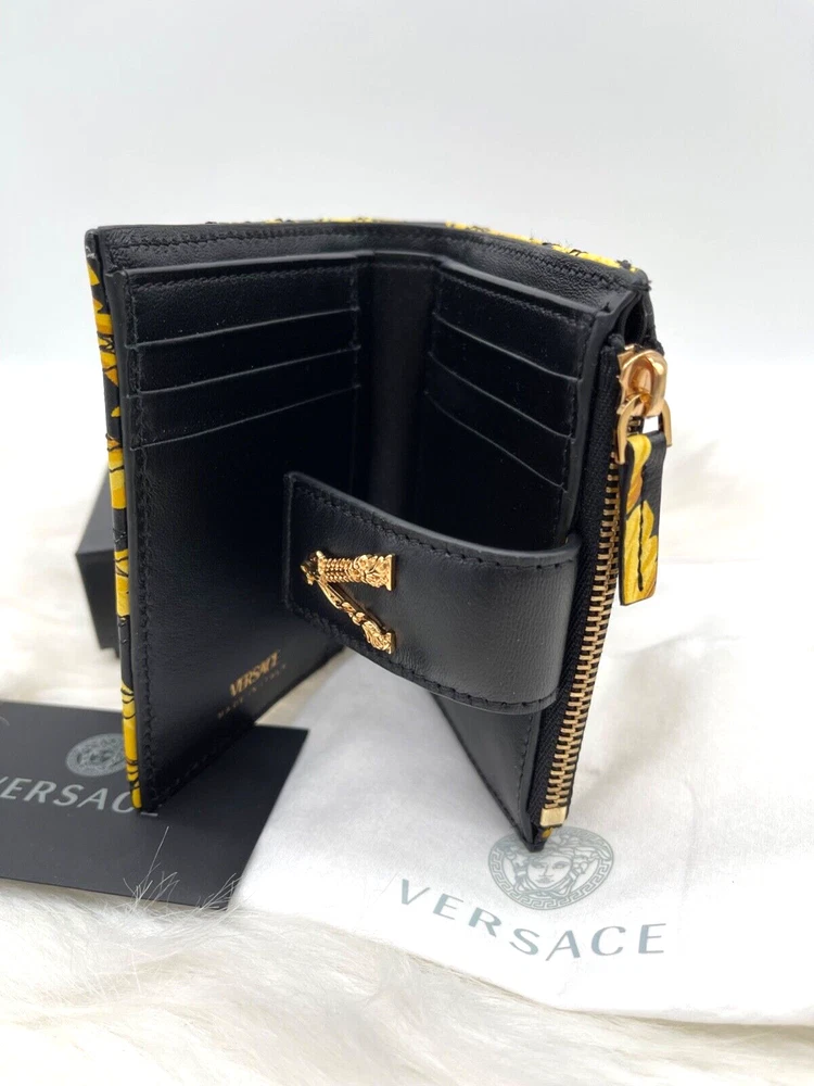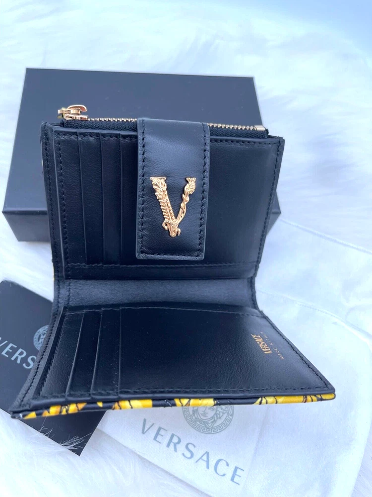 This wallet is pure luxury! The Versace Virtus Barocco design is stunning, and the silk twill with leather trim feels so premium. It's compact yet fits all my cards and cash perfectly. The craftsmanship is flawless—definitely worth the investment for a stylish everyday accessory. Love the bold gold detailing—it adds a touch of elegance to any outfit!