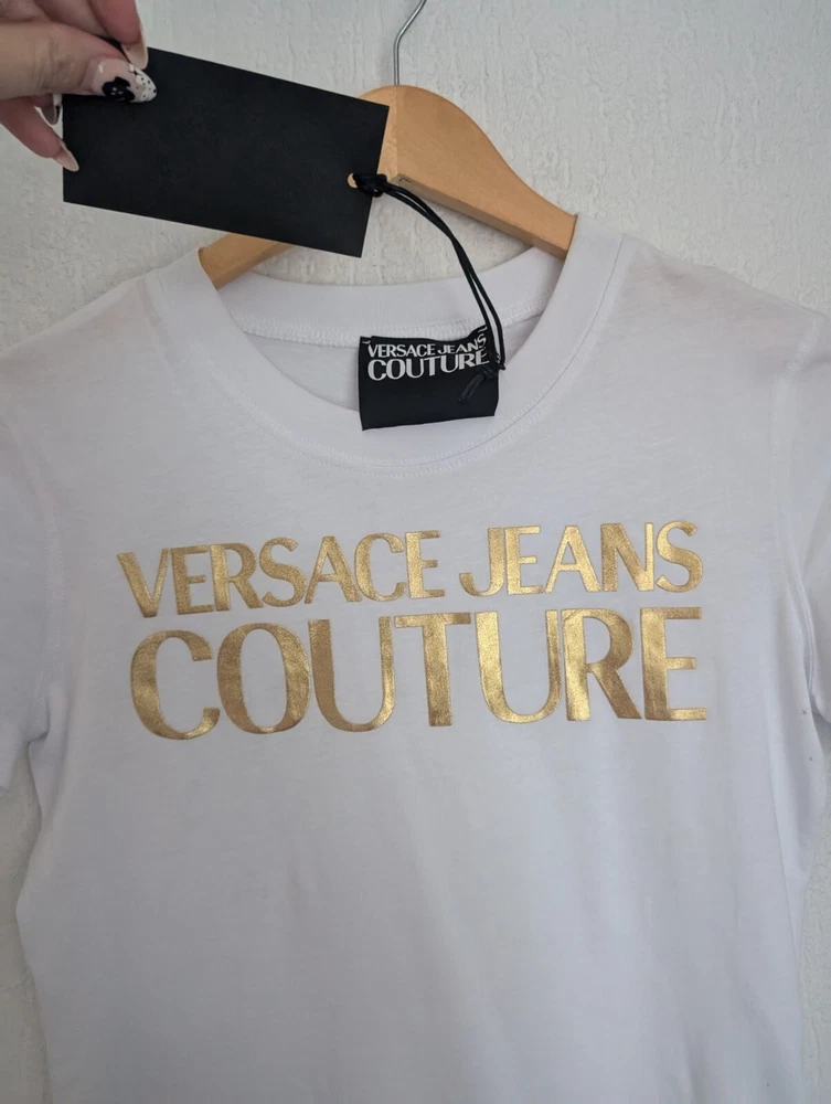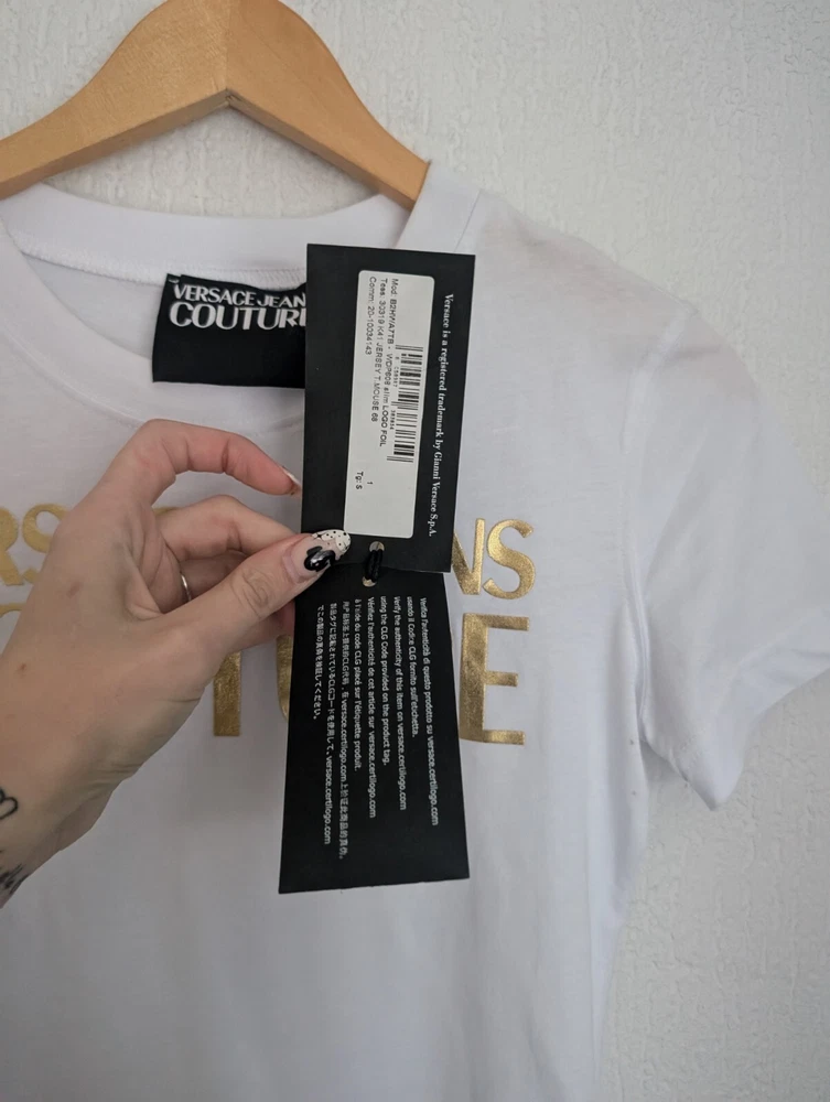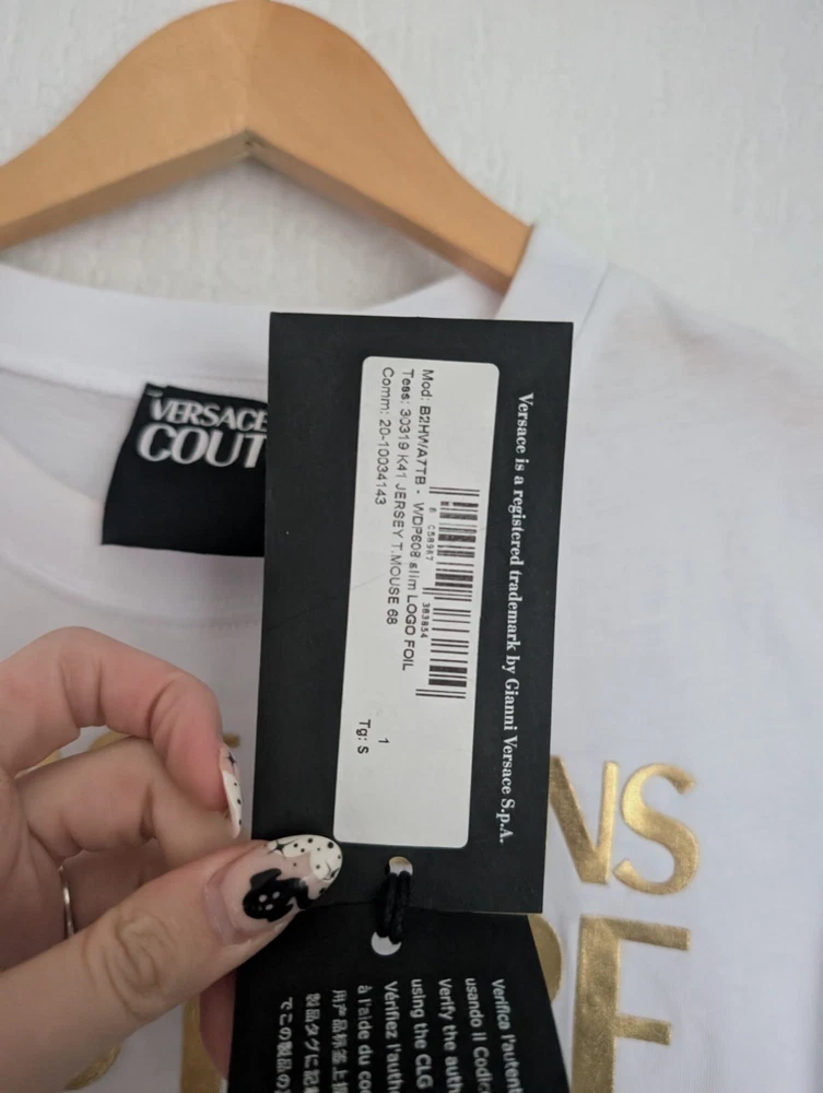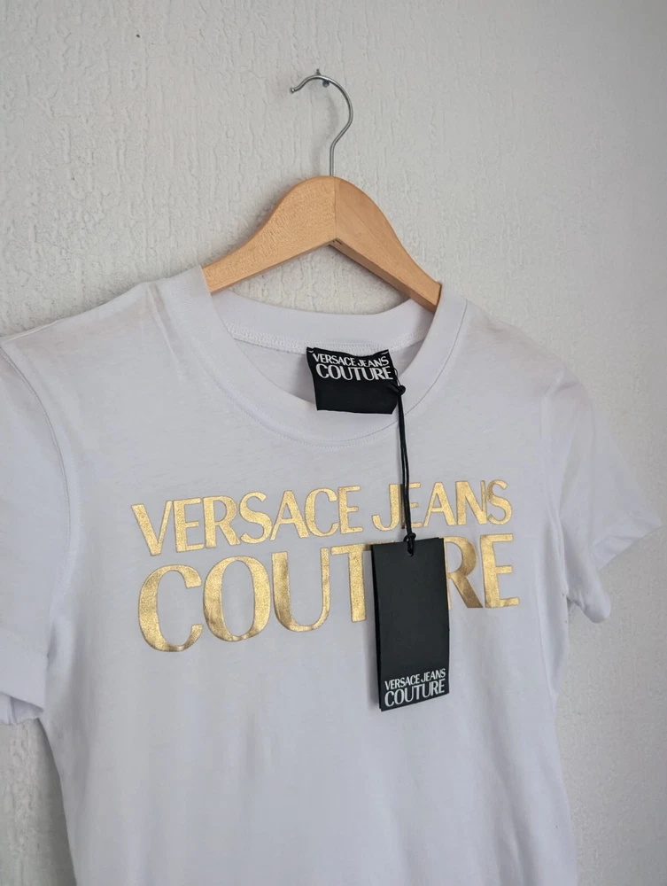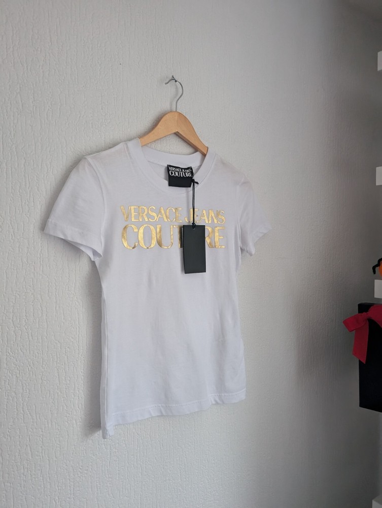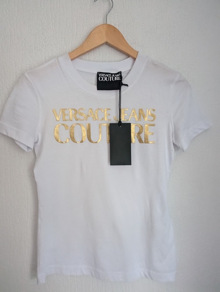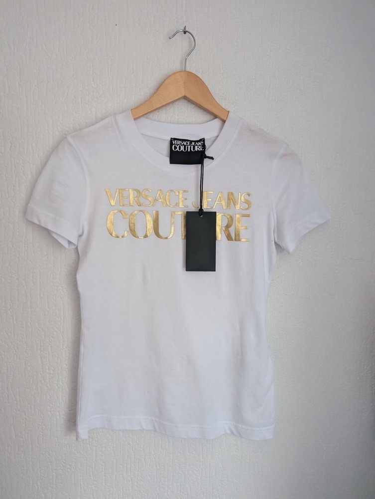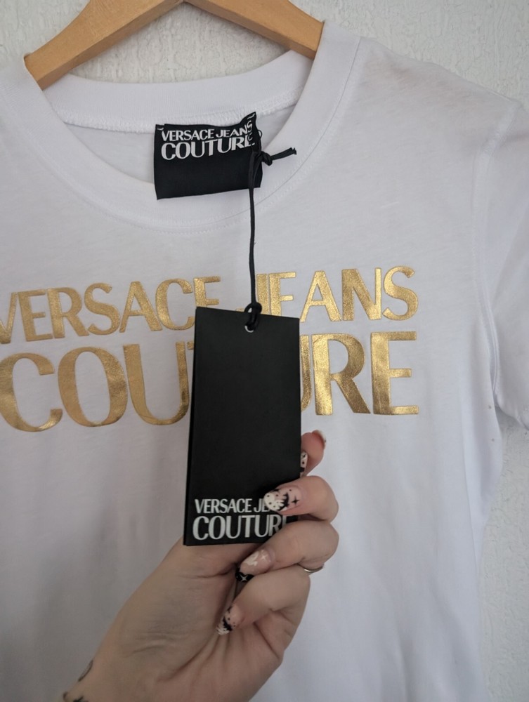 Versace gold foil logo womens t-shirt with couture details UK size S