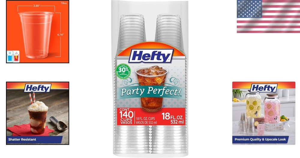 Brand: Unbranded Included Components: Cups Product Care Instructions: Disposable Style: Clear Unit Count: 140.0 Count Special Feature: Transparent Other Special Features Of The Product: Transparent gtin13: Does Not Apply Item Dimensions W X H: 7.75"w X 15.2"h MPN: Disposable_Plastic_Cups Features: Decorative, Shatter-Resistant, Recyclable, Transparent Recommended Uses For Product: Serving Beverages Personalize: No Antique: No Material Type: Plastic Number of Items: 1 UPC: Does Not Apply Size: 18 Ounces Product Style: Clear Character: Disposable Plastic Cups Occasion: Birthday Type: Cups Material: Plastic Item Type Name: Hefty Clear Cups 18 Oz, 140 Ct Shape: Round Material Features: Disposable, Recyclable Reusability: Disposable Capacity: 18 Fluid Ounces Color: Clear