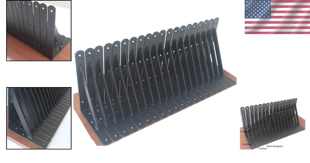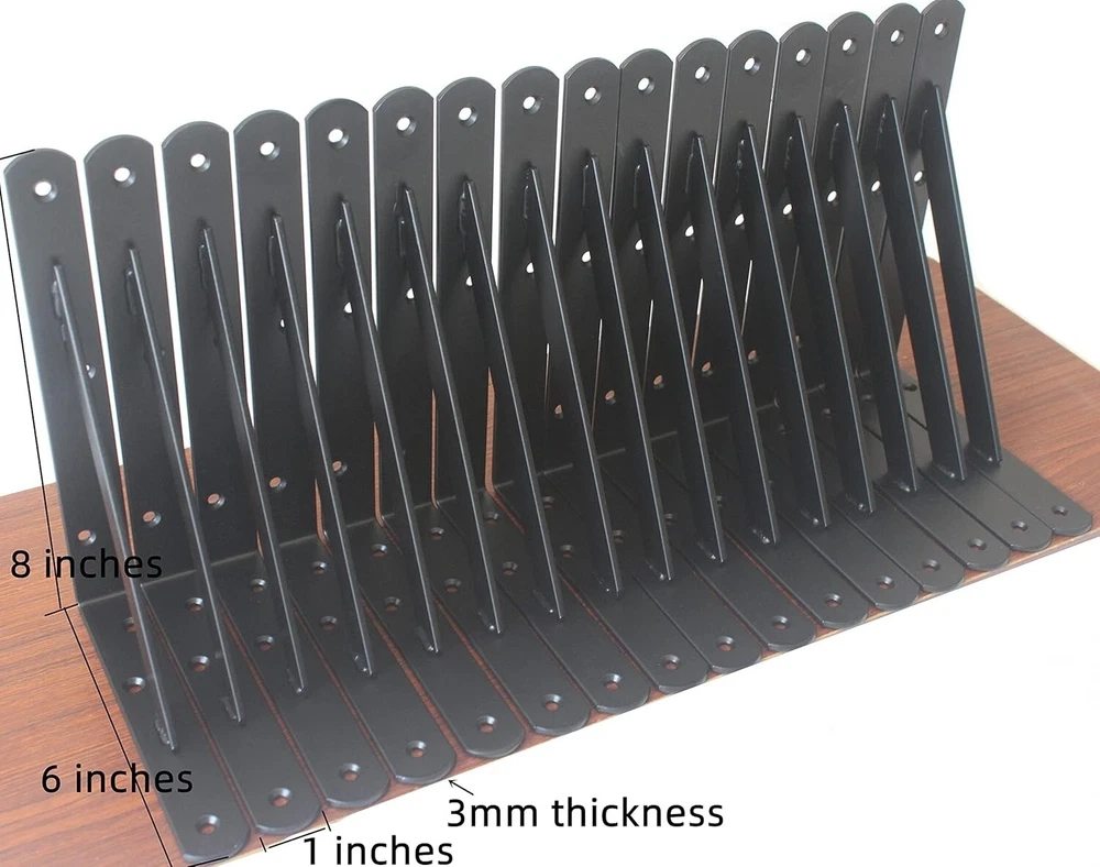 Item Width: Heavy Duty Shelf Brackets Included Components: Bag Item Depth: 6 Inches Packaging: Bag Suitable For: Books Mounting Type: Wall Mount Maximum Weight Capacity: 240 lb Personalized: No Number of Items in Set: 20 Mounting: Wall Mounted Item Length: Heavy Duty Shelf Brackets Batteries Required?: No Required Tools: No Tools Required, Basic DIY Tools Item Height: Heavy Duty Shelf Brackets Additional Parts Required: No Set Includes: Shelf Brackets, Screws Finish: Powder Coated Wood Tone: Multicolor Number of Shelves: More Than 6 Color: Black UPC: Does not apply Shape: Rectangle Distance from Floor to Bottom: 0 in Assembly Required: No Features: Heavy Duty, Corrosion Resistant, Rust Resistant, Durable Item Dimensions L X W X H: 8 X 1 X 6 Inches Brand: Unbranded Maximum Weight per Shelf: 240 lb Item Weight: 13.29 lb Size: 8''x6'' Material: Steel Type: Shelf Brackets Product Dimensions: 8 X 1 X 6 Inches Finish Type: Powder Coated gtin13: Does not apply Style: Industrial