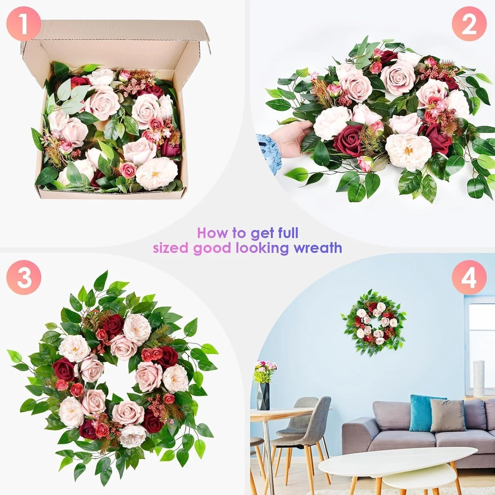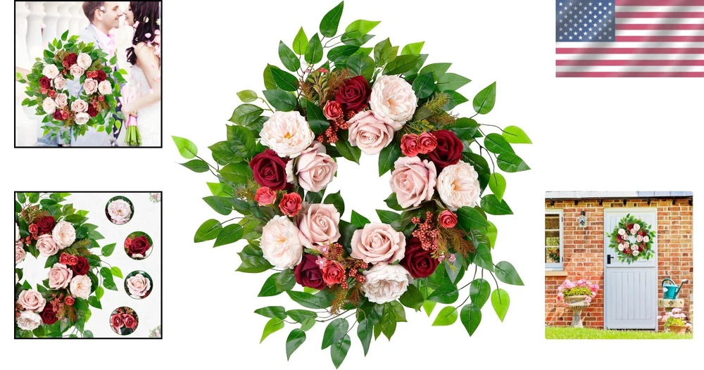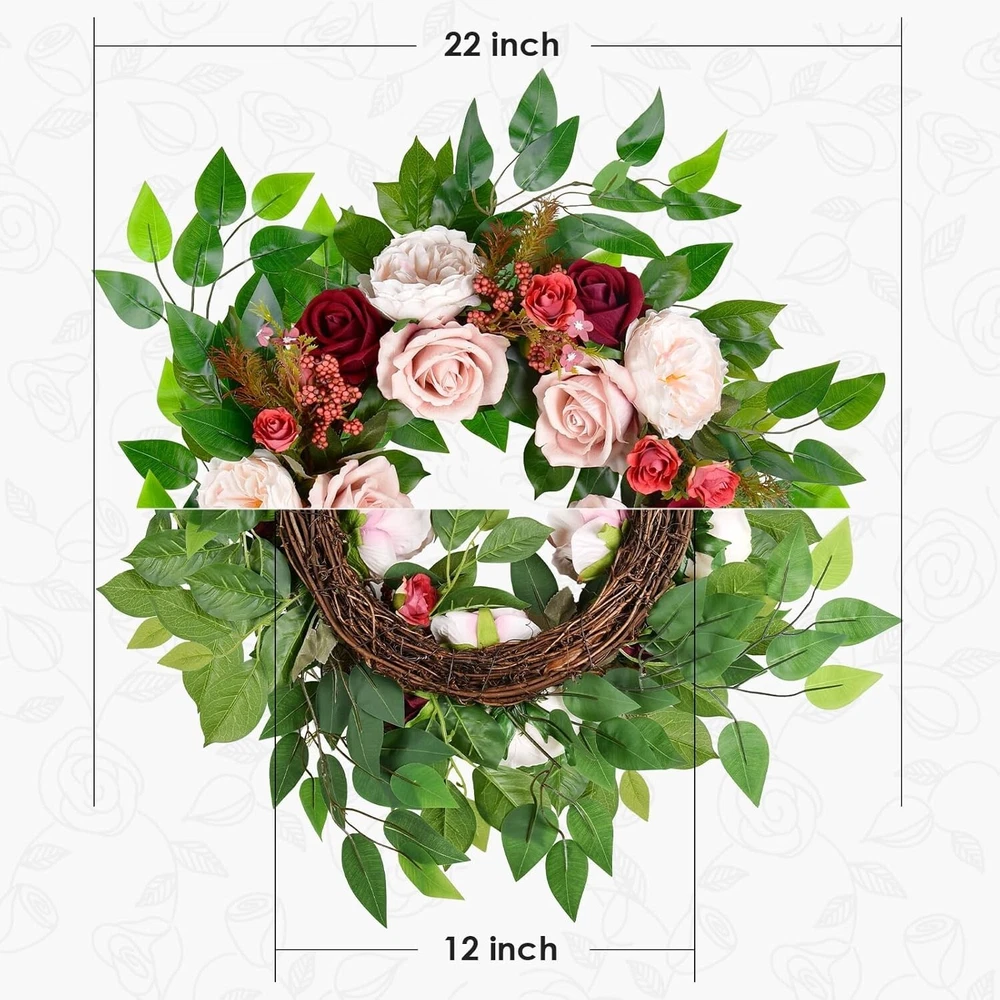 Versatile 22-inch Rose Wreath - Luxurious Decor for Any Special Occasion