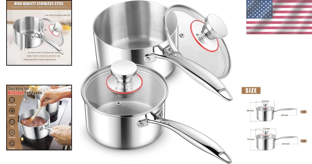 Versatile 2Qt & 3Qt Stainless Steel Saucepans - Perfect for All Cooking Needs ‹ › ‹ › ‹ › ‹ › ‹ › ‹ › ‹ › ‹ › ‹ › Versatile 2Qt & 3Qt Stainless Steel Saucepans Your Perfect Companion for All Cooking Needs Premium Construction: Crafted from top-quality 18/10 stainless steel, free from chemical coatings. Absolutely resistant to corrosion, rust, and reaction with food. Durable and robust with no warping, cracking, or chipping. Enjoy healthy cooking without the concern of toxic materials leaching into your meals. Effortlessly easy to clean and dishwasher safe for ultimate convenience. Durable Handle: Long, hollow handle remains cool to the touch, prioritizing your safety. Ergonomically designed for comfort; fits perfectly in your hand. Riveted stainless steel handles provide strength and durability, ensuring a firm, secure grip. Tri-Ply Construction: Advanced triple-ply stainless steel cladding ensures even and rapid heating. Energy-efficient design saves you time and resources. Compatibility with various cooktops: induction, gas, electric, glass, ceramic, halogen. Tempered Glass Lid: Tight-fitting lid retains moisture and enhances flavors. Featuring a ventilation hole to prevent boil-overs while allowing you to monitor progress. Riveted metal knob with silicone gaskets stays cool, ensuring ease of use. Set of 2: Includes two versatile saucepans (1QT & 3QT) perfect for a variety of culinary tasks. Ideal for boiling, simmering, stewing, reheating, or creating culinary masterpieces. An exceptional gift choice for Christmas, Thanksgiving, housewarming, and other special occasions. Why choose our Stainless Steel Saucepans? Transform your culinary experiences with our Versatile 2Qt & 3Qt Stainless Steel Saucepans. Designed with high-grade materials and innovative features, these pans ensure that your cooking is not only safe but also extraordinary. With a durable handle, tri-ply construction, and tempered glass lids, these saucepans are the embodiment of elegance, practicality, and quality. Enhance your kitchen collection today and embrace cooking as an art form—every meal will become a delightful moment waiting to be savored! Shipping Free & Fast Shipping - We offer free shipping to most of the USA with a normal delivery time of 3-7 days. However, due to the current situation, additional delivery time (up to 3 weeks) may be required for some items. Alternative Carriers - We may use alternative carriers (e.g. USPS, FedEx, UPS, etc.) to ensure your package arrives safely and on time. Due to the use of multiple carriers, we are unable to provide a tracking number automatically. Handling Time - Orders are processed and shipped within 1-2 business days of receiving cleared payment. Shipping Restrictions - Shipping to Alaska, Hawaii, Puerto Rico, Guam, and other US territories may incur shipping charges or delivery restrictions. Please contact us before ordering, or your order can be refunded/cancelled. State Restrictions - There may be restrictions based on your state of purchase. For example, certain items may not be shipped to California due to state regulations. Contact for Tracking Updates - If you require tracking updates or have any concerns about the delivery of your order, please feel free to contact us, and we will be happy to assist you. Return 30-Day Hassle-Free Returns - We want you to be completely satisfied with your purchase. If you are not, you can return the item within 30 days of receiving it for a full refund or exchange. Easy Return Process - To start a return, simply contact us and we will provide you with a prepaid return shipping label and detailed instructions. Restocking Fee - There are no restocking fees for returns. However, the buyer is responsible for return shipping costs if the return is not due to a seller's error. Refund Processing Time - Refunds will be processed within 5 business days of receiving the returned item in its original condition. Payment We accept all major credit cards, PayPal, and Apple Pay for your convenience. Your payment information is secure and encrypted to ensure a safe and seamless transaction. Please complete your payment within 3 days of purchase to avoid any delays in shipping. Feedback Your feedback is extremely important to us. We strive to provide the best products and customer service possible. If you are satisfied with your purchase, please take a moment to leave us a positive review. If you have any concerns or issues with your order, please contact us before leaving negative feedback. We are committed to resolving any problems and ensuring your satisfaction. Contact Us If you have any questions or concerns, please feel free to reach out to our customer support team. You can contact us through the eBay messaging system. We are available Monday to Friday, 9:00 am to 5:00 pm EST, and we will do our best to respond to your inquiry within 24 hours. Buy it now and enjoy a pleasant shopping experience! UPC: Not Set Unit Quantity: 2.98 kg Stove Type Compatibility: Electric,Gas,Induction,Glass,Ceramic,Halogen Material: Stainless Steel Set Includes: Lid,Saucepan Features: Dishwasher Safe,Easy Clean,With Lid,Ergonomically Designed Handle Type of Oven: Electric,Gas,Induction Brand: Unbranded Surface Coating: Uncoated Capacity: 2 qt Type: Saucepan Color: Silver Item Width: Not Set Item Length: Not Set Item Diameter: 7.9 in MPN: Not Set Country/Region of Manufacture: Not Set Shape: Round Manufacturer Warranty: Not Set Item Height: Not Set Item Depth: 3.9 in Model: Not Set Number of Items in Set: Two-Piece Item Weight: 2.98 kg Heat Resistance: Up to 260°C Unit Type: Not Set