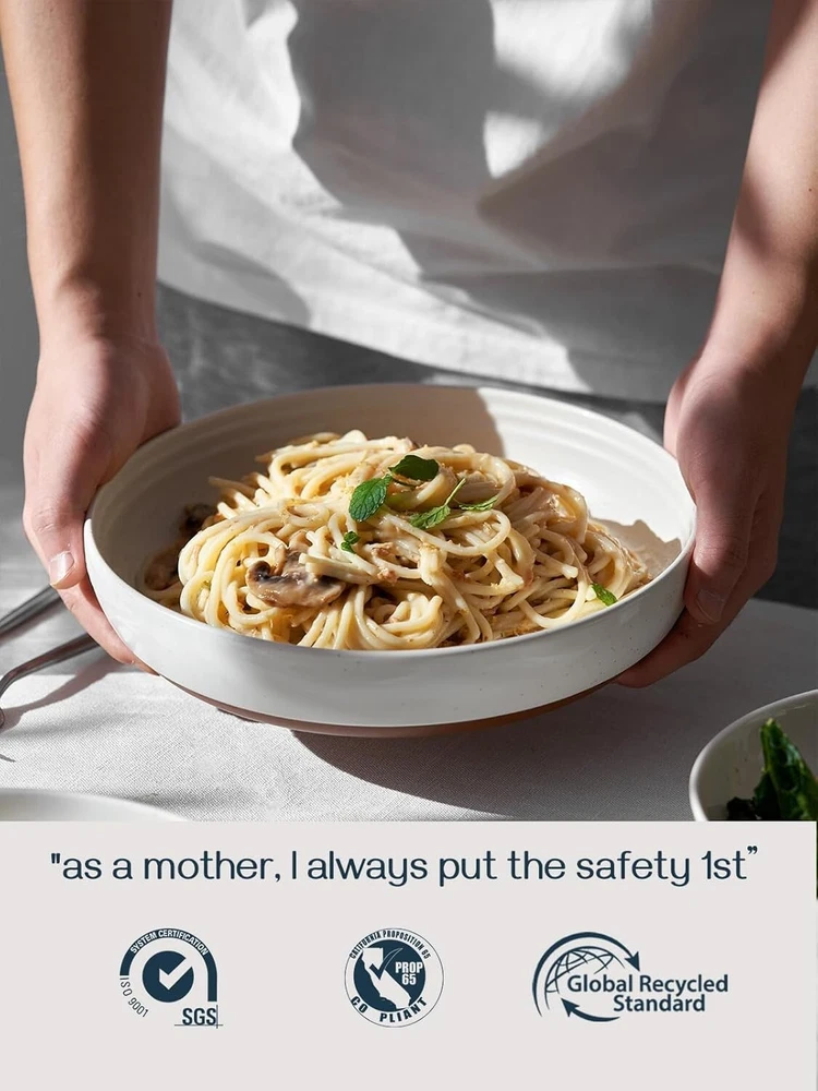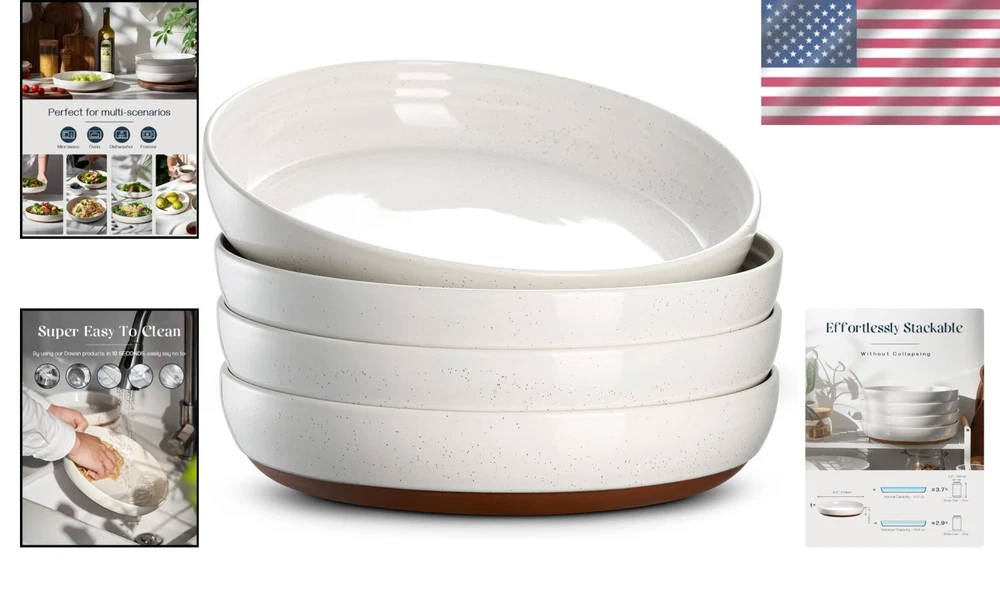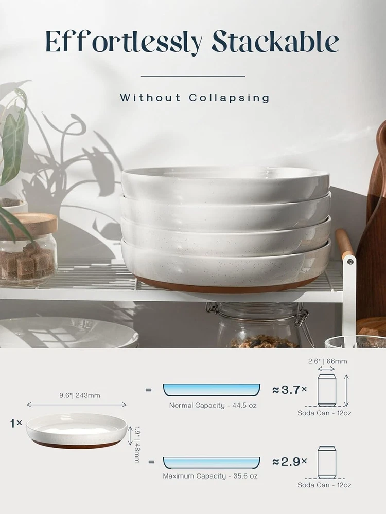Included Components: Pasta Bowls Item Diameter: 9.75 in Product Dimensions: 9.75"w X 1.9"h Pattern: Sesame Finish: Smooth Is Microwaveable: Yes Bowl Material: Ceramic Brand: Unbranded Occasion: Housewarming, Halloween, Anniversary, Thanksgiving, Christmas, Valentine's Day Number Of Pieces: 4 gtin13: Does not apply Material: Porcelain, New Bone China, Ceramic Item Weight: 8.71 lb Size: 9.75''-50oz Shape: Round Number of Items in Set: Four-Piece Personalize: No Capacity: 4e+1 Fluid Ounces Is Dishwasher Safe: Yes Features: Microwave Safe, Dishwasher Safe, Oven Safe, Freezer Safe UPC: Does not apply Style: Classic Theme: Kitchenware Special Feature: Microwave Safe Color: Alabaster White Product Care Instructions: Dishwasher Safe Item Depth: 1.9 in Specific Uses For Product: Soup, Pasta, Salad Department: Adults, Unisex Baby & Toddler, Teens, Kids Type: Bowl Set