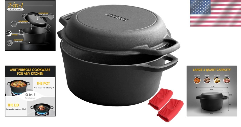 Versatile 5 Quart Cast Iron Dutch Oven with Skillet Lid for Superior Cooking ‹ › ‹ › ‹ › ‹ › ‹ › ‹ › ‹ › ‹ › ‹ › Versatile 5 Quart Cast Iron Dutch Oven with Skillet Lid Your ultimate solution for superior cooking, this 2-in-1 cast iron dutch oven is not just a kitchen tool; it’s an essential companion for culinary enthusiasts. Features: Pre-Seasoned Excellence: Each piece is burned with vegetable oil, ensuring a natural, non-stick surface without synthetic coatings or harmful chemicals. Innovative Skillet Lid: The shallow skillet doubles as a lid, providing versatile cooking options for various recipes. Convenient Transportation: Integrated sturdy loop handles on both pot and skillet ensure a safe and smooth transfer from kitchen to table. Diverse Cooking Styles: Perfect for soups, stews, baking, roasting, frying, grilling, broiling, braising, and sautéing both meats and vegetables. Care Made Easy: Hand wash in warm water, dry thoroughly on medium heat, and season with natural oils for lasting quality. Superior Heat Transfer: Crafted from cast iron, optimal heat retention and distribution enhance your cooking experience. Benefits: Achieve professional-quality meals with minimal effort. Durable and versatile for an extensive range of cooking styles. Eco-friendly and safe non-stick surface enhances your cooking performance. Easy to maintain for of reliable use. Robust construction ensures longevity and excellent performance. Why Choose Our Cast Iron Dutch Oven? Transform your cooking experience with a cast iron dutch oven that exudes quality and versatility. With its 2-in-1 design, you’re not just investing in a pot; you’re acquiring a timeless kitchen essential that will elevate your family meals. Ideal for both novice cooks and seasoned chefs, this dutch oven is designed for efficiency and performance. Say goodbye to mundane meals and embrace the rich flavors achieved through cast iron cooking. Order your Versatile 5 Quart Cast Iron Dutch Oven with Skillet Lid today, and let your culinary creativity flourish! Shipping Free & Fast Shipping - We offer free shipping to most of the USA with a normal delivery time of 3-7 days. However, due to the current situation, additional delivery time (up to 3 weeks) may be required for some items. Alternative Carriers - We may use alternative carriers (e.g. USPS, FedEx, UPS, etc.) to ensure your package arrives safely and on time. Due to the use of multiple carriers, we are unable to provide a tracking number automatically. Handling Time - Orders are processed and shipped within 1-2 business days of receiving cleared payment. Shipping Restrictions - Shipping to Alaska, Hawaii, Puerto Rico, Guam, and other US territories may incur shipping charges or delivery restrictions. Please contact us before ordering, or your order can be refunded/cancelled. State Restrictions - There may be restrictions based on your state of purchase. For example, certain items may not be shipped to California due to state regulations. Contact for Tracking Updates - If you require tracking updates or have any concerns about the delivery of your order, please feel free to contact us, and we will be happy to assist you. Return 30-Day Hassle-Free Returns - We want you to be completely satisfied with your purchase. If you are not, you can return the item within 30 days of receiving it for a full refund or exchange. Easy Return Process - To start a return, simply contact us and we will provide you with a prepaid return shipping label and detailed instructions. Restocking Fee - There are no restocking fees for returns. However, the buyer is responsible for return shipping costs if the return is not due to a seller's error. Refund Processing Time - Refunds will be processed within 5 business days of receiving the returned item in its condition. Payment We accept all major credit cards, PayPal, and Apple Pay for your convenience. Your payment information is secure and encrypted to ensure a safe and seamless transaction. Please complete your payment within 3 days of purchase to avoid any delays in shipping. Feedback Your feedback is extremely important to us. We strive to provide the best products and customer service possible. If you are satisfied with your purchase, please take a moment to leave us a positive review. If you have any concerns or issues with your order, please contact us before leaving negative feedback. We are committed to resolving any problems and ensuring your satisfaction. Contact Us If you have any questions or concerns, please feel free to out to our customer support team. You can contact us through the eBay messaging system. We are available Monday to Friday, 9:00 am to 5:00 pm EST, and we will do our best to respond to your inquiry within 24 hours. Buy it now and enjoy a pleasant shopping experience! Capacity: 5 Quarts Item Diameter: 13 inch Item Height: 11.68 Centimeters Item Weight: 13.63 pounds Heat Resistance: 500 degrees Fahrenheit Item Depth: 6.4 inches Unit Quantity: 1 Stove Type Compatibility: Electric,Gas,Induction Set Includes: Lid,Cast Iron Dutch Oven,Skillet Material: Cast Iron Features: Easy Clean,Easy to Clean,Oven-Safe,With Lid,Not Dishwasher Safe Type of Oven: Electric,Gas,Induction Type: Dutch Oven Color: Black Surface Coating: Pre-Seasoned Shape: Round Number of Items in Set: Single Item