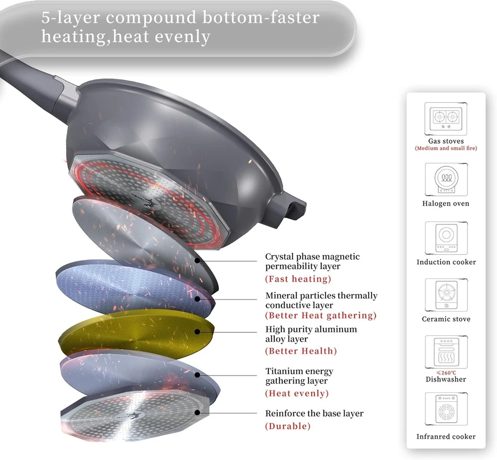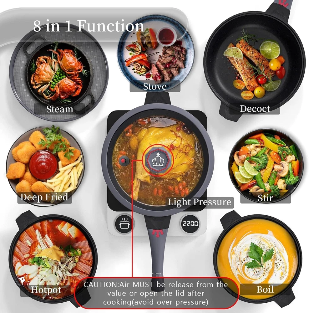 Versatile 5 Quart Nonstick Cooking Pan with Glass Lid - Oven and Dishwasher Safe ‹ › ‹ › ‹ › ‹ › ‹ › ‹ › ‹ › ‹ › ‹ › ‹ › ‹ › Versatile 5 Quart Nonstick Cooking Pan with Glass Lid Your Ultimate Kitchen Companion: Simplify your cooking experience with this 5 Quart Nonstick Cooking Pan . Designed for the modern kitchen, this versatile pan is perfect for a variety of cooking methods including: Deep frying Light pressure cooking Steaming & Stewing Boiling & Decocting Baking & Stir-frying Rice cooking & Hotpot Say goodbye to clutter! This multi-functional pan can replace an array of appliances like deep fat fryers, steamers, sauté pans, skillets, and more. Features: Always nonstick titanium coating – cook without oil or butter! SGS approved and free of harmful chemicals including PTFE, PFOA, PFAS, lead, and cadmium. 10KPA micro pressure valve that reduces cooking time by up to 50% for stews! Hard anodized aluminum body - lightweight, warp-resistant, and incredibly durable. Oven safe up to 500°F/260°C and compatible with all cooktops. Elegant diamond pattern with a stunning crown on the lid for a chic kitchen presence. Ergonomic detachable handle with temperature indicator for precise cooking. Silicone glass lid that seals in flavor and nutrients while being heat resistant. 5-quart capacity, ideal for serving 4-6 people during family gatherings. Complete Package: This exceptional cooking pan includes: 1 x 5 qt All-in-One Pan 1 x Packaging Box 1 x Pot Lid 1 x Silicone Spatula 1 x Non-stick wok steamer grid 1 x Non-stick silicone pad 1 x User/Recipe Guides Tips for Optimal Use: Always ensure to monitor cooking, avoid prolonged high heat to maintain the coating’s integrity. Clean with warm soapy water, and avoid abrasive scrubs for longevity. If storing, ensure the lid is opened to release any micro pressure within the pot. Elevate your culinary experience and impress your guests with the exquisite 5 Quart Nonstick Cooking Pan . Kitchen luxury is just a click away! Shipping Free & Fast Shipping - We offer free shipping to most of the USA with a normal delivery time of 3-7 days. However, due to the current situation, additional delivery time (up to 3 weeks) may be required for some items. Alternative Carriers - We may use alternative carriers (e.g. USPS, FedEx, UPS, etc.) to ensure your package arrives safely and on time. Due to the use of multiple carriers, we are unable to provide a tracking number automatically. Handling Time - Orders are processed and shipped within 1-2 business days of receiving cleared payment. Shipping Restrictions - Shipping to Alaska, Hawaii, Puerto Rico, Guam, and other US territories may incur shipping charges or delivery restrictions. Please contact us before ordering, or your order can be refunded/cancelled. State Restrictions - There may be restrictions based on your state of purchase. For example, certain items may not be shipped to California due to state regulations. Contact for Tracking Updates - If you require tracking updates or have any concerns about the delivery of your order, please feel free to contact us, and we will be happy to assist you. Return 30-Day Hassle-Free Returns - We want you to be completely satisfied with your purchase. If you are not, you can return the item within 30 days of receiving it for a full refund or exchange. Easy Return Process - To start a return, simply contact us and we will provide you with a prepaid return shipping label and detailed instructions. Restocking Fee - There are no restocking fees for returns. However, the buyer is responsible for return shipping costs if the return is not due to a seller's error. Refund Processing Time - Refunds will be processed within 5 business days of receiving the returned item in its original condition. Payment We accept all major credit cards, PayPal, and Apple Pay for your convenience. Your payment information is secure and encrypted to ensure a safe and seamless transaction. Please complete your payment within 3 days of purchase to avoid any delays in shipping. Feedback Your feedback is extremely important to us. We strive to provide the best products and customer service possible. If you are satisfied with your purchase, please take a moment to leave us a positive review. If you have any concerns or issues with your order, please contact us before leaving negative feedback. We are committed to resolving any problems and ensuring your satisfaction. Contact Us If you have any questions or concerns, please feel free to reach out to our customer support team. You can contact us through the eBay messaging system. We are available Monday to Friday, 9:00 am to 5:00 pm EST, and we will do our best to respond to your inquiry within 24 hours. Buy it now and enjoy a pleasant shopping experience! UPC: Not Set Unit Quantity: 5 qt Stove Type Compatibility: Electric,Gas,Induction Set Includes: Asparagus Pot,Frying Pan,Grill Pan,Lid,Saute Pan,Tempered Glass Lid Material: Aluminum,Silicone Features: Dishwasher Safe,Non-Stick,Oven-Safe,With Lid,Detachable Handle Type of Oven: Electric,Gas,Induction,Oven Brand: Unbranded Type: Frying Pan Surface Coating: Non-Stick Item Diameter: 11 in Color: Charcoal Item Width: Not Set Item Length: Not Set MPN: Not Set Shape: Round Item Height: Not Set Country/Region of Manufacture: Not Set Item Depth: 3.3 in Manufacturer Warranty: Not Set Item Weight: 5 lb Number of Items in Set: One-Piece Model: Not Set Heat Resistance: 500°F Unit Type: lb