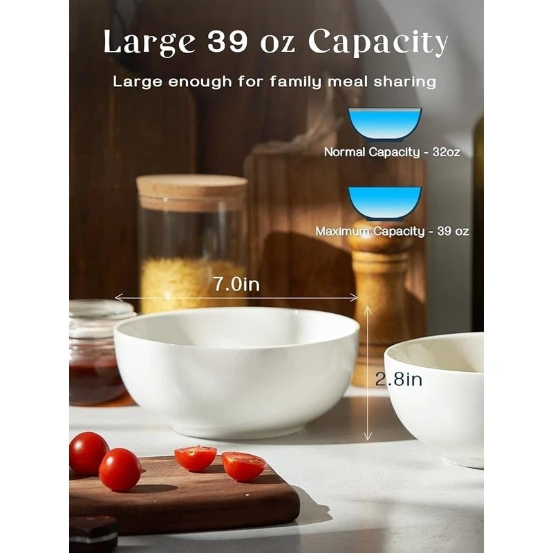 $ 34.854 Set 8.3" Pasta Bowls 34 Oz Ceramic Salad Bowls White Serving Plate Wide White