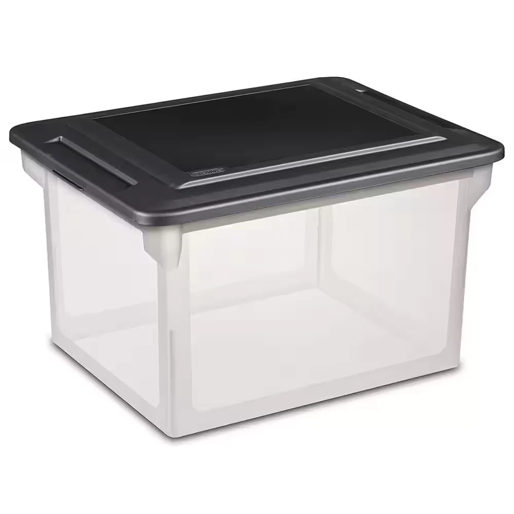 Fast Shipping On All Items 30 Days Money Guarantee Customer Support Excellent Service 100% Satisfaction Satisfaction Guaranteed Versatile Clear Organizing Storage File Box with Lid (12-Pack) Specification Color Family Clear Color/Finish Clear Included No additional components or accessories are included Lid Color Black Lid/Top Mechanism Detached Material Plastic Pack Size 12 Returnable 90-Day Shape Rectangle Storage Capacity 25 qt Storage Features Durable,Includes Top,Stackable Storage Product Type Storage Bins and Totes Weight Capacity (lb) 50 lb Manufacturer Warranty No warranty available Product Depth (in) 18.5 in Product Height (in) 11 in Product Width (in) 14 in 14.0 inches x 18.5 inches x 11.0 inches. Weight: 50.0 lb Item Description It's hard to be productive while surrounded by clutter. Keep your office and workspace neat and organized with the 12-pack Sterilite Convenient Versatile Clear Organizing Storage File Box with Lid. This bundle comes with 12 packs of storage file boxes for all your needs. The overall dimensions of this item are 18.5 in. long, 14 in. wide, and 11 in. tall, making it an ideal solution for keeping receipts, bills, taxes, and paperwork sorted and contained. Customize letter or legal-sized hanging folders and file neatly organized, while reducing clutter around the home or office. The tight-fit snap black lid keeps files dust-free and protected, while the indexed top allows for multiple storage containers to be stacked, maximizing vertical storage space. The organizer's contoured design provides a comfortable grip surface for easy transporting when files need to be taken on the go or relocated. Create a productive environment with the help of a 12-pack Sterilite Convenient Versatile Clear Organizing Storage File Box with Lid. About us We offer the best prices around on high quality products. Our E-store includes media such as books, movies, music and games while offering electronics, toys, sporting apparel, clothing, tools, general home, garden items and more. Shipping We are always working hard to ensure your package arrives as soon as possible. Please understand that some factors like weather, high postal traffic, and the performance of shipping companies are outside of our control. We offer free shipping to the lower 48 states and ship within 2-3 business days of payment, usually sooner. We do not accept P.O. Boxes. Please provide a physical address. For shipping outside of the continental USA, we only use eBay's Global Shipping Program.The item is shipped to KY and then sent to the rest of the world. International customers are responsible for all duties and taxes. Continue to check out to calculate costs for shipping the item to your country. Messages regarding eBay's Global Shipping Program MUST be directed at eBay EXCLUSIVELY. Returns We offer a 30-Day Return Policy on items in which you are not completely satisfied with. You have the option of a full-refund or an exchange of the item. No returns are available on items shipped outside of the USA Satisfaction We try over very best to make sure every customer is completely satisfied. If there's a problem, message us! We're happy to help. Payment Options Shop With Confidence