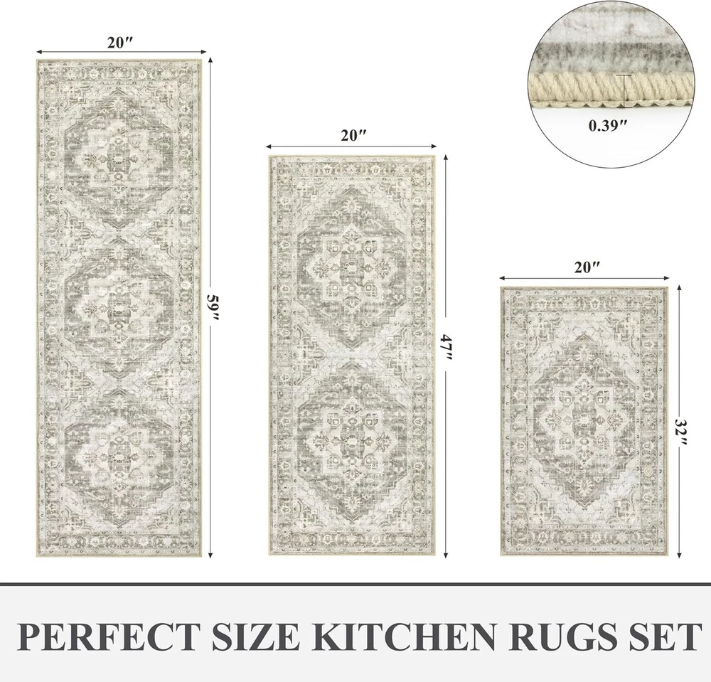 Versatile Farmhouse Kitchen Rugs - Set of 3 with Stain Resistant Features ‹ › ‹ › ‹ › ‹ › ‹ › ‹ › ‹ › ‹ › ‹ › Versatile Farmhouse Kitchen Rugs - Set of 3 Transform your kitchen and home decor with our exquisite set of 3 Farmhouse Kitchen Rugs. This beautifully crafted set includes a set of boho kitchen rugs, featuring sizes 20"x32", 20"x47", and 20"x59"—designed to offer both beauty and practicality. These wider, larger sizes are perfect for kitchen floors and laundry rooms, while also serving as delightful indoor door mats and bathroom mats. Features: Elegant Design: Enhance your living space with a vintage aesthetic that adds a touch of elegance and a vibrant pop of color. Durable Material: Crafted from premium polyester with a thickness of 0.39", these rugs are designed not to create tripping hazards while fitting comfortably under doors. Non-Slip Backing: Built with a non-slip rubber backing for secure placement, ensuring safety for you and your family in high traffic areas. Stain Resistant: The water and stain resistant surface allow for easy cleaning, ensuring your rugs maintain their beauty over time. Machine Washable: Effortlessly clean your rugs by vacuuming regularly or machine washing separately in cold water with mild detergent for a fresh look. Why Choose Our Versatile Kitchen Rugs? This stunning set of kitchen rugs is more than just a decorative accent—it serves versatile functions throughout your home. Perfect for use as kitchen floor mats, kitchen sink rugs, laundry room runners, entryway mats, and bathroom mats, this set is designed to create a cozy and stylish environment. Invest in the beauty and function of your home today—choose our Versatile Farmhouse Kitchen Rugs Set! Shipping Free & Fast Shipping - We offer free shipping to most of the USA with a normal delivery time of 3-7 days. However, due to the current situation, additional delivery time (up to 3 weeks) may be required for some items. Alternative Carriers - We may use alternative carriers (e.g. USPS, FedEx, UPS, etc.) to ensure your package arrives safely and on time. Due to the use of multiple carriers, we are unable to provide a tracking number automatically. Handling Time - Orders are processed and shipped within 1-2 business days of receiving cleared payment. Shipping Restrictions - Shipping to Alaska, Hawaii, Puerto Rico, Guam, and other US territories may incur shipping charges or delivery restrictions. Please contact us before ordering, or your order can be refunded/cancelled. State Restrictions - There may be restrictions based on your state of purchase. For example, certain items may not be shipped to California due to state regulations. Contact for Tracking Updates - If you require tracking updates or have any concerns about the delivery of your order, please feel free to contact us, and we will be happy to assist you. Return 30-Day Hassle-Free Returns - We want you to be completely satisfied with your purchase. If you are not, you can return the item within 30 days of receiving it for a full refund or exchange. Easy Return Process - To start a return, simply contact us and we will provide you with a prepaid return shipping label and detailed instructions. Restocking Fee - There are no restocking fees for returns. However, the buyer is responsible for return shipping costs if the return is not due to a seller's error. Refund Processing Time - Refunds will be processed within 5 business days of receiving the returned item in its original condition. Payment We accept all major credit cards, PayPal, and Apple Pay for your convenience. Your payment information is secure and encrypted to ensure a safe and seamless transaction. Please complete your payment within 3 days of purchase to avoid any delays in shipping. Feedback Your feedback is extremely important to us. We strive to provide the best products and customer service possible. If you are satisfied with your purchase, please take a moment to leave us a positive review. If you have any concerns or issues with your order, please contact us before leaving negative feedback. We are committed to resolving any problems and ensuring your satisfaction. Contact Us If you have any questions or concerns, please feel free to reach out to our customer support team. You can contact us through the eBay messaging system. We are available Monday to Friday, 9:00 am to 5:00 pm EST, and we will do our best to respond to your inquiry within 24 hours. Buy it now and enjoy a pleasant shopping experience! UPC: Not Set Unit Quantity: 5.75 Room: Kitchen,laundry room,bathroom,bedroom,dining room Material: Rubber,Polyester Features: Easy to Clean,Machine Washable,Stain Resistant,Non Slip,Water Repellent Department: Adults Theme: Farmhouse Boho Brand: Unbranded Type: Rug Color: Taupe Pattern: Floral Shape: Runner Item Width: Not Set Item Length: Not Set MPN: Not Set Model: Not Set Size: 20"x32"+20"x47"+20"x59" Style: Boho Pile Height: Low Pile Regional Design: Not Set Country/Region of Manufacture: Not Set Pile Type: Low Pile Weave: Machine Made Era: 21st Century (2000-Now) Unit Type: lb Personalize: Not Set Personalized: Not Set