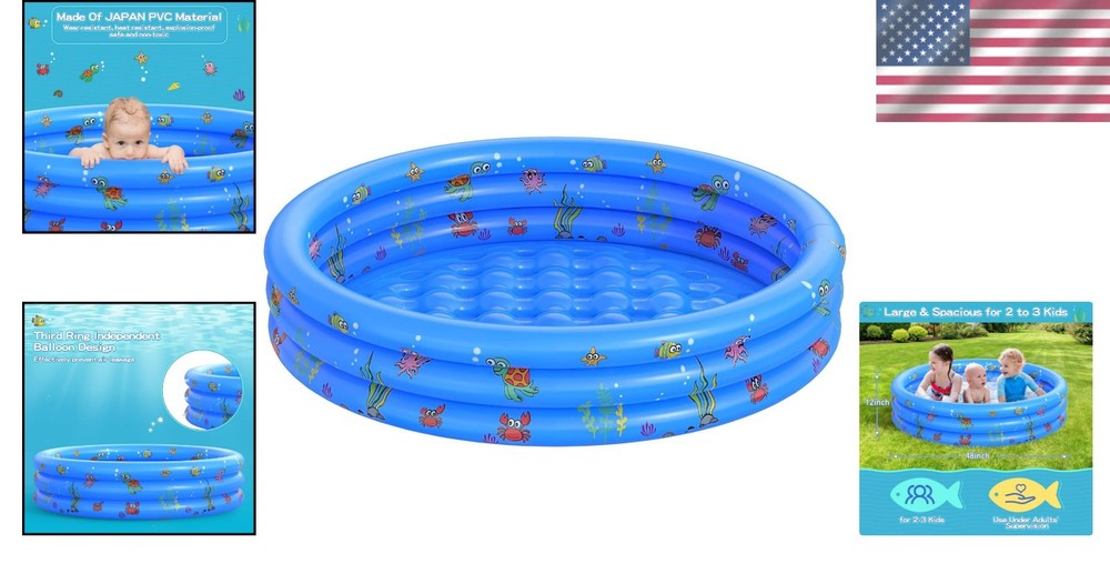 Versatile Inflatable Pool for Toddlers – Perfect for Play, Parties, and Pets ‹ › ‹ › ‹ › ‹ › ‹ › ‹ › ‹ › ‹ › Versatile Inflatable Pool for Toddlers - Perfect for Play, Parties, and Pets Features: Constructed from upgraded, BPA-free, non-toxic PVC material that is durable and anti-aging. Thickened design reduces the risk of punctures, ensuring a longer lifespan. Super soft inflatable floor adds an extra layer of safety for children. Dimensions: Diameter 48'' (122cm) / Height 12'' (30cm), holding up to 18 gallons of water. Designed for 3 to 7 children, perfect for helping young learners become independent in the water. User-friendly with easy inflation and integrated drain valve for convenient storage. Benefits: Healthy materials ensure peace of mind for parents while kids play. Soft floor enhances the playful experience and adds a protective barrier. Versatile use as a ball pit or sandbox, and even as a pet house for small animals. Space-saving design allows for easy storage when not in use. Why Choose Our Inflatable Pool? Searching for the perfect pool that combines safety, versatility, and fun for your toddlers? This inflatable pool is crafted with care using , eco-friendly materials, designed to withstand the joyous energy of children while ensuring their safety. The soft inflatable floor adds comfort, allowing kids to play worry-free, while the ample size accommodates multiple youngsters at once. Transform your backyard into a summer paradise for your children with an inflatable pool that brings excitement and joy. Whether for pool parties, educational water play, or a delightful playtime with pets, this pool is an essential addition to family fun. Dive into summer happiness — order your inflatable pool for toddlers today! Shipping Free & Fast Shipping - We offer free shipping to most of the USA with a normal delivery time of 3-7 days. However, due to the current situation, additional delivery time (up to 3 weeks) may be required for some items. Alternative Carriers - We may use alternative carriers (e.g. USPS, FedEx, UPS, etc.) to ensure your package arrives safely and on time. Due to the use of multiple carriers, we are unable to provide a tracking number automatically. Handling Time - Orders are processed and shipped within 1-2 business days of receiving cleared payment. Shipping Restrictions - Shipping to Alaska, Hawaii, Puerto Rico, Guam, and other US territories may incur shipping charges or delivery restrictions. Please contact us before ordering, or your order can be refunded/cancelled. State Restrictions - There may be restrictions based on your state of purchase. For example, certain items may not be shipped to California due to state regulations. Contact for Tracking Updates - If you require tracking updates or have any concerns about the delivery of your order, please feel free to contact us, and we will be happy to assist you. Return 30-Day Hassle-Free Returns - We want you to be completely satisfied with your purchase. If you are not, you can return the item within 30 days of receiving it for a full refund or exchange. Easy Return Process - To start a return, simply contact us and we will provide you with a prepaid return shipping label and detailed instructions. Restocking Fee - There are no restocking fees for returns. However, the buyer is responsible for return shipping costs if the return is not due to a seller's error. Refund Processing Time - Refunds will be processed within 5 business days of receiving the returned item in its condition. Payment We accept all major credit cards, PayPal, and Apple Pay for your convenience. Your payment information is secure and encrypted to ensure a safe and seamless transaction. Please complete your payment within 3 days of purchase to avoid any delays in shipping. Feedback Your feedback is extremely important to us. We strive to provide the best products and customer service possible. If you are satisfied with your purchase, please take a moment to leave us a positive review. If you have any concerns or issues with your order, please contact us before leaving negative feedback. We are committed to resolving any problems and ensuring your satisfaction. Contact Us If you have any questions or concerns, please feel free to out to our customer support team. You can contact us through the eBay messaging system. We are available Monday to Friday, 9:00 am to 5:00 pm EST, and we will do our best to respond to your inquiry within 24 hours. Buy it now and enjoy a pleasant shopping experience! Unit Quantity: 2.5 lb Material: PVC Set Includes: Pool Toy,Swimming Baby Pool,Repair Patch Lining Material: PVC Features: Easy Assembly,Drain Hole,Foldable,Inflatable,Lightweight,Portable Water Type: All Water Types,Fresh Type: Inflatable Pool Shape: Round Item Depth: 1 ft Item Diameter: 4 ft Capacity: 18 gal Number of Rings: 0 Color: Blue Seating Capacity: 1-3 Item Weight: 2.5 lb
