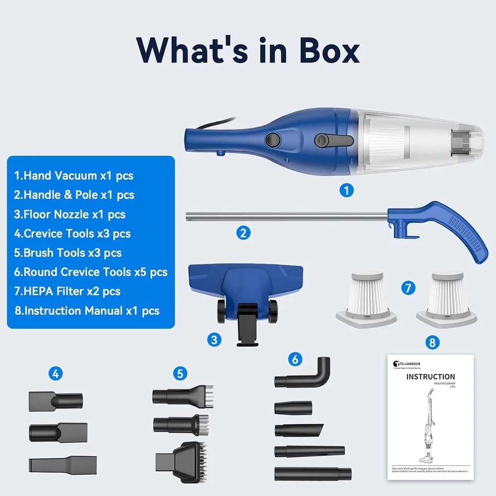 Versatile Stick Vacuum with 12-in-1 Functionality - Ideal for Pet Hair & Carpets ‹ › ‹ › ‹ › ‹ › ‹ › ‹ › ‹ › ‹ › ‹ › ‹ › ‹ › Versatile Stick Vacuum with 12-in-1 Functionality Ideal for Pet Hair & Carpets Features: 12-in-1 versatility: easily switches from stick to handheld vacuum. Includes essential accessories: floor brush, crevice tool, and dusting brush. Powerful 15Kpa suction from a whisper-quiet 400W motor, tackling everything from crumbs to pet hair. Super lightweight design at only 3lbs, making it easy to carry and store. Rotatable floor brush capable of adjusting between 0°-90° for hard-to-reach areas. High Efficiency filtration system captures over 99.99% of dust, pollen, and allergens. Large capacity dust cup with 0.8L capacity for efficient cleaning. 16.4FT power cable for extended reach and fewer plug changes. Benefits: Effortlessly clean every corner and surface in your home. Quiet operation is great for households with pets and children. Compact and organized storage, with easy-to-follow installation guidance. High-density filters for a healthier home environment. Ideal for all floor types, including low-pile carpets and hard floors. Why choose our Versatile Stick Vacuum? Are you in search of an efficient and versatile cleaning solution for your home? This 12-in-1 Stick Vacuum with its powerful suction and lightweight design is your answer. Seamlessly transition from cleaning floors to upholstery with ease while being considerate of noise, making it perfect for family homes. Plus, the advanced filtration system ensures a healthier indoor environment, free from allergens and dust. Take the next step in effortless cleaning—order your Versatile Stick Vacuum today and experience the difference! Shipping Free & Fast Shipping - We offer free shipping to most of the USA with a normal delivery time of 3-7 days. However, due to the current situation, additional delivery time (up to 3 weeks) may be required for some items. Alternative Carriers - We may use alternative carriers (e.g. USPS, FedEx, UPS, etc.) to ensure your package arrives safely and on time. Due to the use of multiple carriers, we are unable to provide a tracking number automatically. Handling Time - Orders are processed and shipped within 1-2 business days of receiving cleared payment. Shipping Restrictions - Shipping to Alaska, Hawaii, Puerto Rico, Guam, and other US territories may incur shipping charges or delivery restrictions. Please contact us before ordering, or your order can be refunded/cancelled. State Restrictions - There may be restrictions based on your state of purchase. For example, certain items may not be shipped to California due to state regulations. Contact for Tracking Updates - If you require tracking updates or have any concerns about the delivery of your order, please feel free to contact us, and we will be happy to assist you. Return 30-Day Hassle-Free Returns - We want you to be completely satisfied with your purchase. If you are not, you can return the item within 30 days of receiving it for a full refund or exchange. Easy Return Process - To start a return, simply contact us and we will provide you with a prepaid return shipping label and detailed instructions. Restocking Fee - There are no restocking fees for returns. However, the buyer is responsible for return shipping costs if the return is not due to a seller's error. Refund Processing Time - Refunds will be processed within 5 business days of receiving the returned item in its original condition. Payment We accept all major credit cards, PayPal, and Apple Pay for your convenience. Your payment information is secure and encrypted to ensure a safe and seamless transaction. Please complete your payment within 3 days of purchase to avoid any delays in shipping. Feedback Your feedback is extremely important to us. We strive to provide the best products and customer service possible. If you are satisfied with your purchase, please take a moment to leave us a positive review. If you have any concerns or issues with your order, please contact us before leaving negative feedback. We are committed to resolving any problems and ensuring your satisfaction. Contact Us If you have any questions or concerns, please feel free to reach out to our customer support team. You can contact us through the eBay messaging system. We are available Monday to Friday, 9:00 am to 5:00 pm EST, and we will do our best to respond to your inquiry within 24 hours. Buy it now and enjoy a pleasant shopping experience! UPC: Not Set Unit Quantity: 3 Features: Portable,Corded,12-in-1,Versatile Cleaning,Powerful Suction,Lightweight,High Efficiency Filter,Large Capacity Dust Cup,Compact Structure,Swivel Steering,Low Noise Level,Washable Filter Included Accessories: Crevice Tool,Duster,Floor Brush,2 HEPA Filters Brand: Unbranded Type: Stick Model: Not Set Smart Home Protocol: Not Set Runtime: Not Set Charge Time: Not Set Smart Home Compatibility: Not Set MPN: Not Set Color: #4navy Power: 400 W Filters: HEPA Capacity: 0.8 L Voltage: 120 V Country/Region of Manufacture: Not Set Item Weight: 3 lb Protection Plan: No Coverage Manufacturer Warranty: Not Set Unit Type: lb Cord Type: Not Set Bagged/Bagless: Not Set
