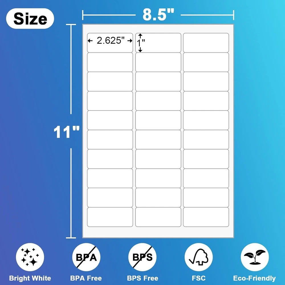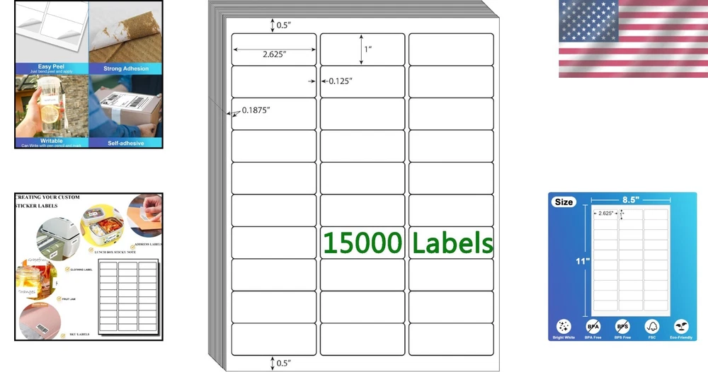 Versatile White Blank Sticker Labels - 1" x 2-5/8" for DIY & Shipping Needs ‹ › ‹ › ‹ › ‹ › ‹ › ‹ › ‹ › ‹ › ‹ › ‹ › Versatile White Blank Sticker Labels Size: 1" x 2-5/8" (30 Labels Per Sheet, 8.5" x 11" Sheet Size, 500 Sheets - 15,000 Labels Total) Key Features: Universal Compatibility: Designed to work seamlessly with most laser and inkjet printers, ensuring a hassle-free printing experience without jams. High Quality Prints: These labels are printed crisply and clearly, with a matte surface that prevents ink smudges, ensuring your labels are easy to read. Easy to Use: Round corners allow for swift removal without tearing. Simply bend the sheet to expose the edge and peel off the label easily. Exceptional Adhesion: Equipped with a permanent adhesive that adheres quickly and securely to various surfaces including cardboard, glass, plastic, and more. Versatile Use: Ideal for DIY projects, shipping labels, custom sticker sheets, name tags, and more. Suitable for various shipping carriers like FBA, UPS, USPS, DHL, and FEDEX. Why Choose Our White Blank Sticker Labels? Whether you’re tackling your next DIY project or shipping packages with precision, our Versatile White Blank Sticker Labels are your ultimate solution. With a pristine matte finish for clear printing and outstanding adhesion capabilities, these labels ensure that your work stands out beautifully while maintaining professionalism. Turn your creativity into reality with these user-friendly labels designed for effortless application and perfect results every time. Enhance your organization, create custom labels, and streamline your shipping process effortlessly. Elevate your labeling game—order your Versatile White Blank Sticker Labels today! Shipping Free & Fast Shipping - We offer free shipping to most of the USA with a normal delivery time of 3-7 days. However, due to the current situation, additional delivery time (up to 3 weeks) may be required for some items. Alternative Carriers - We may use alternative carriers (e.g. USPS, FedEx, UPS, etc.) to ensure your package arrives safely and on time. Due to the use of multiple carriers, we are unable to provide a tracking number automatically. Handling Time - Orders are processed and shipped within 1-2 business days of receiving cleared payment. Shipping Restrictions - Shipping to Alaska, Hawaii, Puerto Rico, Guam, and other US territories may incur shipping charges or delivery restrictions. Please contact us before ordering, or your order can be refunded/cancelled. State Restrictions - There may be restrictions based on your state of purchase. For example, certain items may not be shipped to California due to state regulations. Contact for Tracking Updates - If you require tracking updates or have any concerns about the delivery of your order, please feel free to contact us, and we will be happy to assist you. Return Please see our eBay Return Policy. Thank you. Payment We accept all major credit cards, PayPal, and Apple Pay for your convenience. Your payment information is secure and encrypted to ensure a safe and seamless transaction. Please complete your payment within 3 days of purchase to avoid any delays in shipping. Feedback Your feedback is extremely important to us. We strive to provide the best products and customer service possible. If you are satisfied with your purchase, please take a moment to leave us a positive review. If you have any concerns or issues with your order, please contact us before leaving negative feedback. We are committed to resolving any problems and ensuring your satisfaction. Contact Us If you have any questions or concerns, please feel free to reach out to our customer support team. You can contact us through the eBay messaging system. We are available Monday to Friday, 9:00 am to 5:00 pm EST, and we will do our best to respond to your inquiry within 24 hours. Thank you for supporting our small family business! UPC: Not Set MPN: Not Set Model: Not Set Unit Quantity: 11.64 Label Type: Shipping Brand: Unbranded Country/Region of Manufacture: Not Set Unit Type: lb