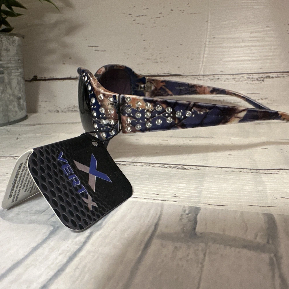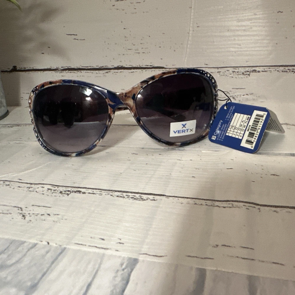 Vertex Sunglasses for Women are a stylish and embellished accessory that come with tags attached. These sunglasses are designed to protect your eyes from the sun while adding a touch of glamour to your outfit. The brand Vertex is known for producing high-quality eyewear, and these sunglasses are no exception. Original $18. Comes with pouch for carrying They are perfect for women who want to look fashionable while also keeping their eyes safe from harmful UV rays.