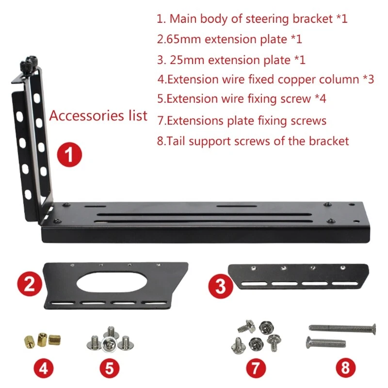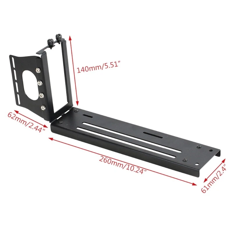 Vertical Graphics Card Holder Bracket GPU Mount kickstand/base For -ATX chassis Features: and high Vertically display a GPU graphics card, for most brand's graphic card, show off the visual of the GPU and its cooler. Dangling installation installation The two installation modes can be selected according to the chassis conditions Designed for most graphics card for case, metal bracket perfectly fit the for case. PCIE riser with high for lower working temperatures and better overall system metal holder, won'for t bend, won'for t efffect the function Specifications: PCIE installation hole:3 Item:Graphics Card Holder Metal Size:Pls See the Pictures Package Includes: Graphics Card Vertical bracket note: Pls remove the All PCI slot bracket first, before mount te vertical holder. Due to the problems of lighting effects and shooting angles, there will be certain tolerances in the product, please understand. Please allow 0-1cm error due to the manual measurment.
