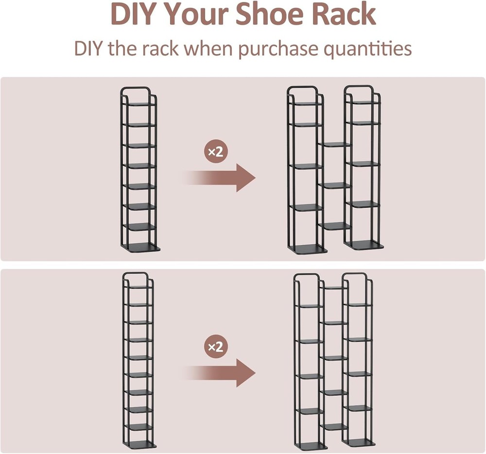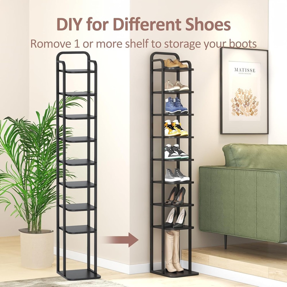 【Space Saving Narrow and Tall Shoe Rack】: This vertical shoe rack is very suitable for use in small spaces. It makes full use of vertical space and occupies a very small space, which is very suitable for entryway, living room, bedroom, corridor and garage, etc. 【As Flexible as You Want】: The shelves are adjustable, if you get two or more shoe racks, you can set up the shoe rack either way you like. In addition, you can remove 1 or 2 shelves to fit shoes of varying heights. 【Stable Home for Your Shoes】: The shoe storage organizer is made of high-quality particleboard. Each partition can easily bear the weight of 11 lb, and the large partition at the bottom helps the shoe rack stand firmly on the ground, giving your shoes stable, reliable suppo... Happylistings Vertical Shoe Rack, Shoe Shelves With 2 Hooks, Wood Shoe Organizer For Entryway, Shoe Tower For Small Spaces, Free Standing (Black, 10 Tier) 【Space Saving Narrow and Tall Shoe Rack】: This vertical shoe rack is very suitable for use in small spaces. It makes full use of vertical space and occupies a very small space, which is very suitable for entryway, living room, bedroom, corridor and garage, etc. 【As Flexible as You Want】: The shelves are adjustable, if you get two or more shoe racks, you can set up the shoe rack either way you like. In addition, you can remove 1 or 2 shelves to fit shoes of varying heights. 【Stable Home for Your Shoes】: The shoe storage organizer is made of high-quality particleboard. Each partition can easily bear the weight of 11 lb, and the large partition at the bottom helps the shoe rack stand firmly on the ground, giving your shoes stable, reliable support 【Worry-Free Assembly】: There’s no need to be afraid of the assembly of this shoe rack, as easy-to-read, illustrated instructions and labeled parts are provided for hassle-free assembly. Easier assembly, easier life! 【What's in the package】: The tall and narrow shoe rack organizer from ZERDER, with user manual. We care much about your shopping experience! Whatever product details, installation difficulty, missing parts or quality issues, just come to us with support. Item Specifics Brand Unbranded Type Free Standing Shoe Racks Color Black Room Type Entryway, Bedroom, Living Room Number of Shelves 8 Special Feature Adjustable Product Dimensions 11.8"D x 10.43"W x 66.92"H Style Modern Finish Type Wood Product Care Instructions Wipe with Dry Cloth Size 10 Tier Weight Limit 11 Pounds Assembly Required Yes Recommended Uses For Product Freestanding Shoe Rack, Storage Number of Items 1 Included Components Hardware Model Freestanding Shoe Rack Item Weight 10 Pounds Furniture Finish Wood Installation Type Freestanding Weight capacity Maximum weight: 11 Pounds Shelf Thickness 1.2 Centimeters UPC 767552470193 Item Weight 10 pounds Item model number ZER-028-029 Contact Us 1.Dear customers, we appreciate your business, our aim is to provide Top Level Customer Service,if you are satisfied with our service, please leave us a 5 star positive feedback . 2.If you have any question or concern about your eBay order, please feel free to let us know. We will try our best to reply all questions within 24 hours. However, no answer will be replied during weekends or holidays. Please allow up to 48 hours delay in receiving our response after long weekends or holidays. 3.Please via eBay Message for a solution for resolutions before leaving negative feedback, we strive to providing the greatest service and bringing the highest satisfaction to all of our customers. Shipping 1.We usually ship within 3-5 business days of receiving cleared payment., and we provide Free Shipping for most items. 2.Fast shipping is very important for us. We use multiple fulfilment warehouse around the United States. We only ship to the lower 48 States and do not ship to PO Boxes. 3.Please make sure the correct Ship-To address is entered before checking out. Once the payment is completed, you may not be able to change the shipping address. We shall not be held responsible for any wrong or undeliverable addresses. Returns 1.We provide 14 days return upon the buyer received the item. It must be in good condition and you will undertake the returned shipping cost. 2.We will offer replacement or refund for all DEFECTIVE items (not including damage resulting from accidents / abuse / misuse / improper care), but a photo is needed for our reference beforehand and should be reported to us within 7 days from purchase date. 3.All items are brand new and have been passed the quality check. All are packed in a good condition before item dispatch. Payment We accept PayPal payment,PayPal Credit,Credit card or debit card and so on. Payment should be completed within 4 (Four) days of auction closing. Or unpaid dispute will be filed for closing auction. We will leave a positive feedback immediately after payment is received. We appreciate a positive feedback as much as you do. If for some reason there is any issue with the purchase, please contact us prior to leaving feedback, we will be glad to work together and provide a satisfying solution. Happylistings DESCRIPTION PAYMENT SHIPPING RETURN POLICY CONTACT US Help & Info Payment Policy Shipping Policy Return Policy FAQ About Us Vertical Shoe Rack, Shoe Shelves With 2 Hooks, Wood Shoe Organizer For Entryway, Shoe Tower For Small Spaces, Free Standing (Black, 10 Tier) 【Space Saving Narrow and Tall Shoe Rack】: This vertical shoe rack is very suitable for use in small spaces. It makes full use of vertical space and occupies a very small space, which is very suitable for entryway, living room, bedroom, corridor and garage, etc. 【As Flexible as You Want】: The shelves are adjustable, if you get two or more shoe racks, you can set up the shoe rack either way you like. In addition, you can remove 1 or 2 shelves to fit shoes of varying heights. 【Stable Home for Your Shoes】: The shoe storage organizer is made of high-quality particleboard.