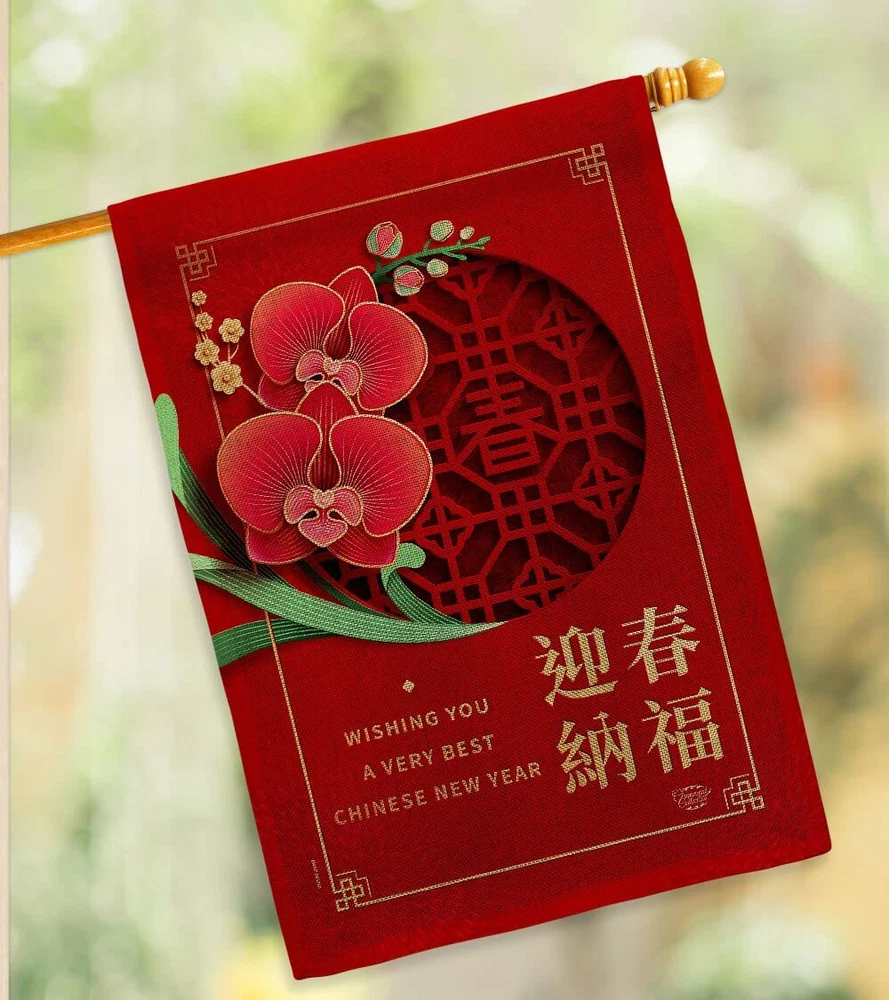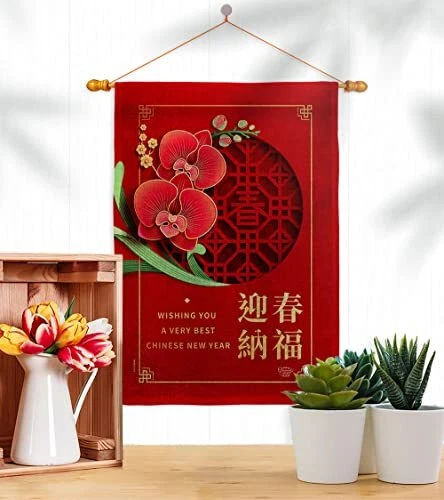 Very Best New Year House Flag Dowel Set Lunar Good Luck Prosperous Seasonal A...