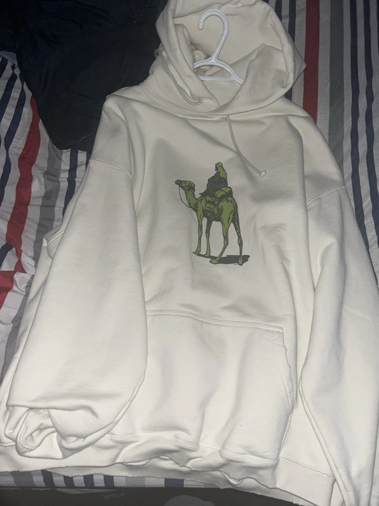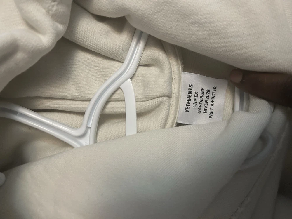 • Authentic Vetements runway piece • Season: Fall/Winter 2019 • Oversized fit, drop shoulders • Heavyweight cotton fleece • White with Silk Road / Darkweb graphic print • Rare runway item, not standard retail release