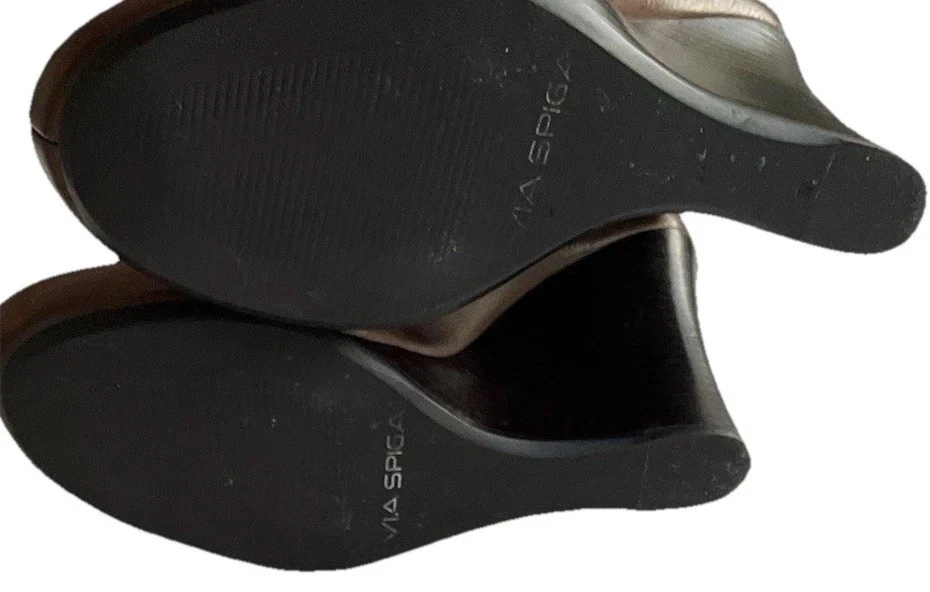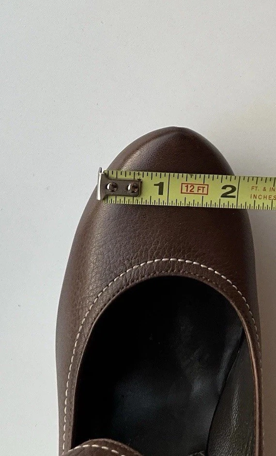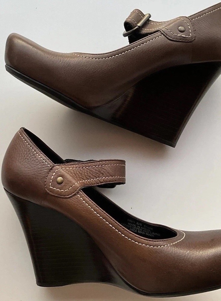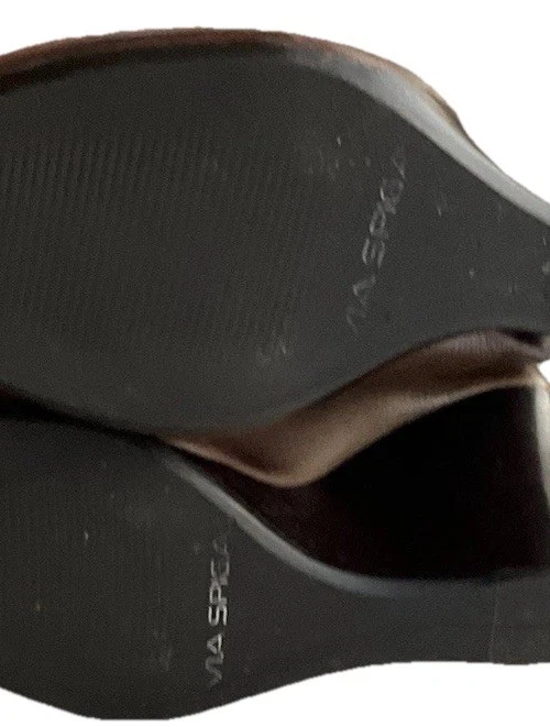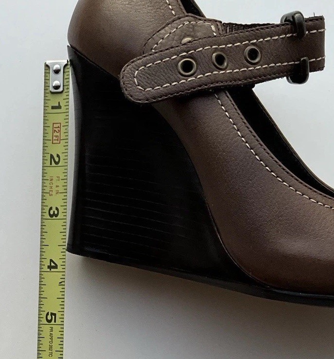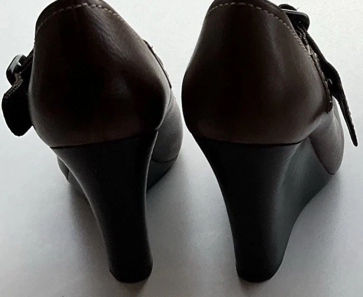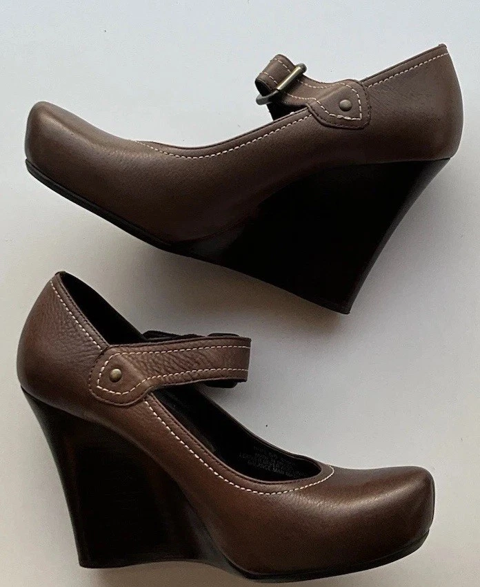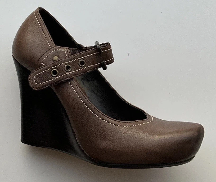 Accents: Strap Toe Shape: Round Toe Type: Heel Heel Style: Block Department: Women Theme: City, Cowboy, Cowgirl, Going Out, Victorian, USA, Transportation, Wedding, Snake, Punk, Outdoor Occasion: Casual, Party/Cocktail, Workwear, Wedding, Travel, Formal, Business, Activewear, Christening Character: Leather Vintage: Yes Upper Material: Leather Brand: Via Spiga US Shoe Size: 5.5 Style: Pump Features: Straps Closure: Buckle Season: Summer, Spring, Fall, Winter Heel Height: High (3-3.9 in) Color: Brown
