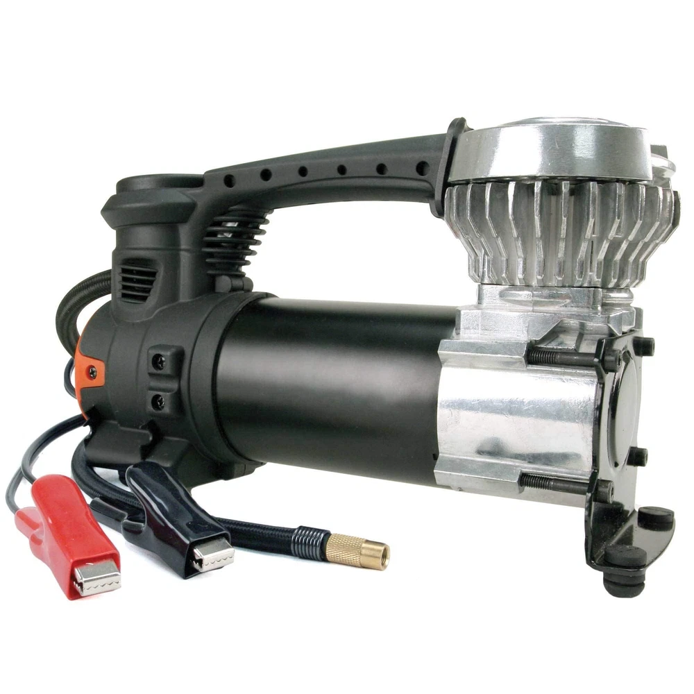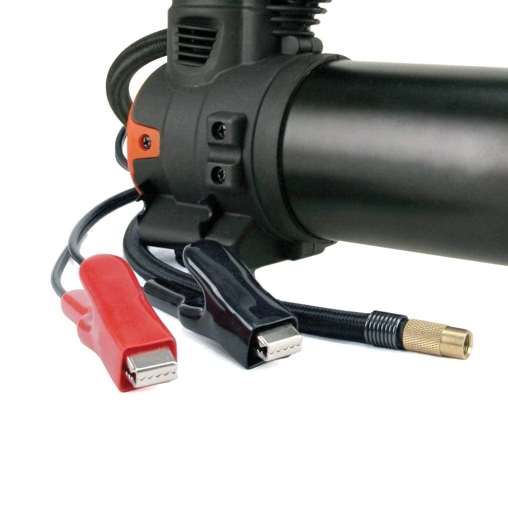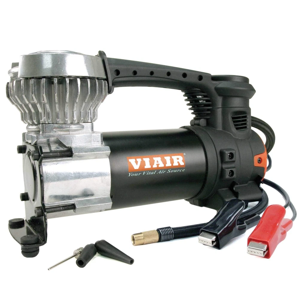 Designed for cars of all sizes, the VIAIR 85P Portable Compressor is a dependable and cost-effective tire inflator that ensures quick and efficient air-up solutions in any situation. Tailored for vehicles with tire sizes up to 31" in diameter, this easy-to-use portable air pump offers peace of mind during every on-road or off-road adventure. Simply attach the heavy-duty battery clamps to your vehicle’s battery, connect the screw-on tire chuck to a tire valve stem, and start the engine and the unit. The pressure can be checked using the tire pressure gauge on the top of the unit. The air compressor comes with a built-in LED work light for convenience of use. The durable deluxe carry bag, included with the air pump kit, enhances portability and storability. Operating at 3x the speed, with a 50% reduction in noise, and a longer lifespan compared to gear-driven compressors, this tire inflator kit runs on 12 volts, delivering a maximum working pressure of up to 60 PSI and a duty cycle of 20 min. at 30 PSI; free flow capacity is 1.26 CFM. It can fill a 225/60/18 tire from 20 to 30 PSI in 1 minute or less. Offering direct power connection to the battery, this compressor can work with any vehicle regardless of the auxiliary power outlet rating. Tire Inflator: Be prepared for tire emergencies with the VIAIR 87P Portable Compressor! Designed for all types of consumer vehicles, this air compressor is three times faster, 50% quieter, and longer-lasting than any gear-driven compressor Easy to Use: Simply attach the heavy-duty battery clamps to your vehicle’s battery, connect the screw-on tire chuck to a tire valve stem, and start the engine and the unit. The pressure can be checked using the tire pressure gauge on the top of the unit Car Accessories: Ideal for inflating tires up to 31" in diameter, this high-quality portable air compressor comes with a built-in LED work light. Our tire air pump kit is one of the must-have car accessories for worry-free adventures on the road Specifications: The tire inflator operates on 12 volts, delivering a maximum working pressure of up to 60 PSI and a duty cycle of 20 min. at 30 PSI; the free flow capacity is 1.26 CFM. It can fill a 225/60/18 tire from 20 to 30 PSI in 1 minute or less Easy Portability: The air compressor kit comes with a durable deluxe carry bag, allowing you to carry and store the kit easily. With our tire air pump, enjoy effortless tire pressure maintenance in any situation without compromising on affordability
