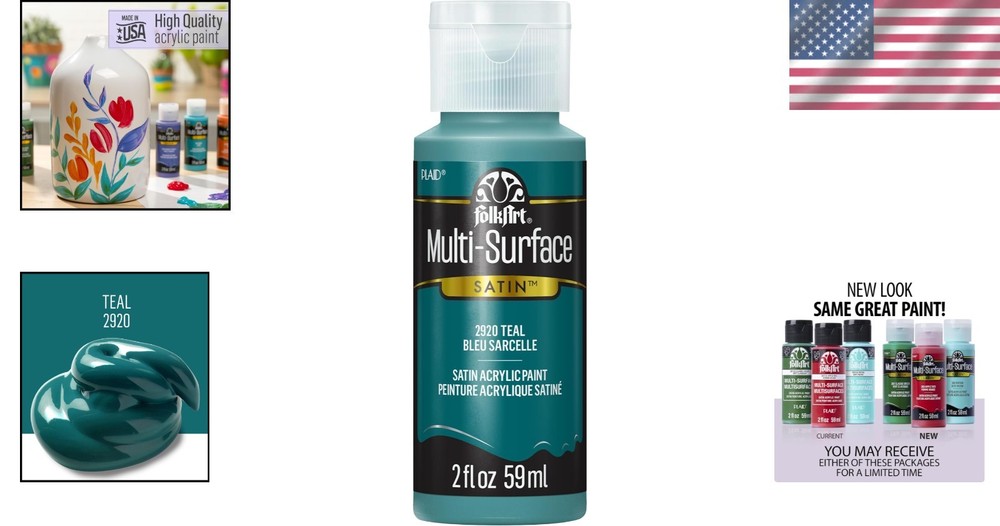 Vibrant 2 oz Multi-Surface Acrylic Paint in Teal Non-Toxic and Durable Features: Perfect 2 oz size - an ideal addition to your art supplies collection. Brilliant colors in a vibrant teal shade that brings your projects to life. Beautiful satin finish when dry, providing an elegant touch to every creation. Safe for both indoor and outdoor projects, ensuring versatility in all your DIY endeavors. Top-shelf dishwasher safe when cured, making it perfect for functional art pieces. Compatible with various surfaces such as wood, terra cotta, canvas, glass, fabric, ceramics, and more. Easy and smooth application for a flawless finish. Simple cleanup with soap and water while wet, giving you peace of mind while you create. Proudly made in the USA by a trusted brand known for quality. Benefits: Perfect for crafters and decorative painters at any skill level. Excellent coverage for all types of projects, from intricate details to larger surfaces. Versatile use allows for creativity on multiple mediums. Durable finish suitable for both decorative and functional items. Why Choose Our Vibrant Acrylic Paint? Elevate your crafting experience with our Vibrant 2 oz Multi-Surface Acrylic Paint in Teal. This non-toxic, durable formula is designed for the creative individual, providing exceptional versatility for all your artistic endeavors. The stunning satin finish enhances the beauty of any project while ensuring it stands the of time. Whether you're just starting or you're a seasoned artist, this creamy, smooth paint will inspire innovation and delight in every stroke. Make the bold choice to transform your crafts into works of art - add our teal acrylic paint to your collection today! Model: Multi-Surface Paint MPN: Multi-Surface_Paint Unit Quantity: 2.0 fluid ounces Color: Teal