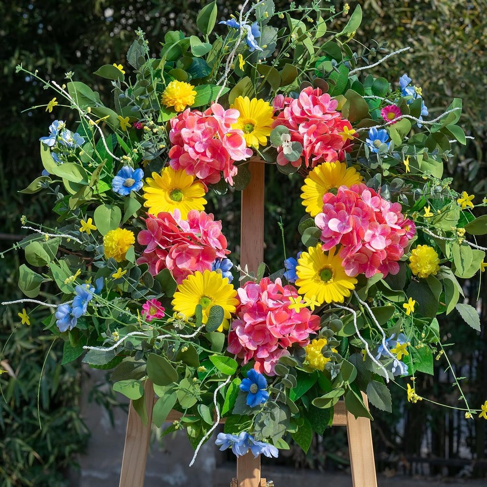 This wreath is absolutely stunning! The colors are so vibrant and lifelike, making my front door pop with cheerful energy. The mix of dahlias, gerbera daisies, and greenery looks so realistic, and the quality is fantastic—no fading even in sunlight. The 24-inch size is perfect, not too big or small, and the eucalyptus adds a lovely natural touch. It’s lightweight yet durable, staying beautiful in all seasons. Such an easy way to instantly upgrade my home’s curb appeal!