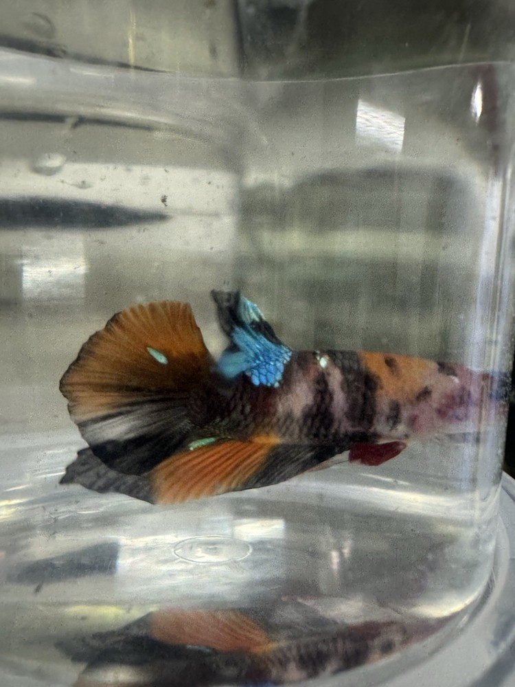 The Koi Galaxy Live Male Betta Fish is a tropical freshwater species known for its aggressive temperament. This beginner-level pet fish is a popular choice among aquarium enthusiasts looking for a unique and striking addition to their tank. With its vibrant colors and distinct markings, this Betta fish is sure to make a statement in any freshwater aquarium setting.
