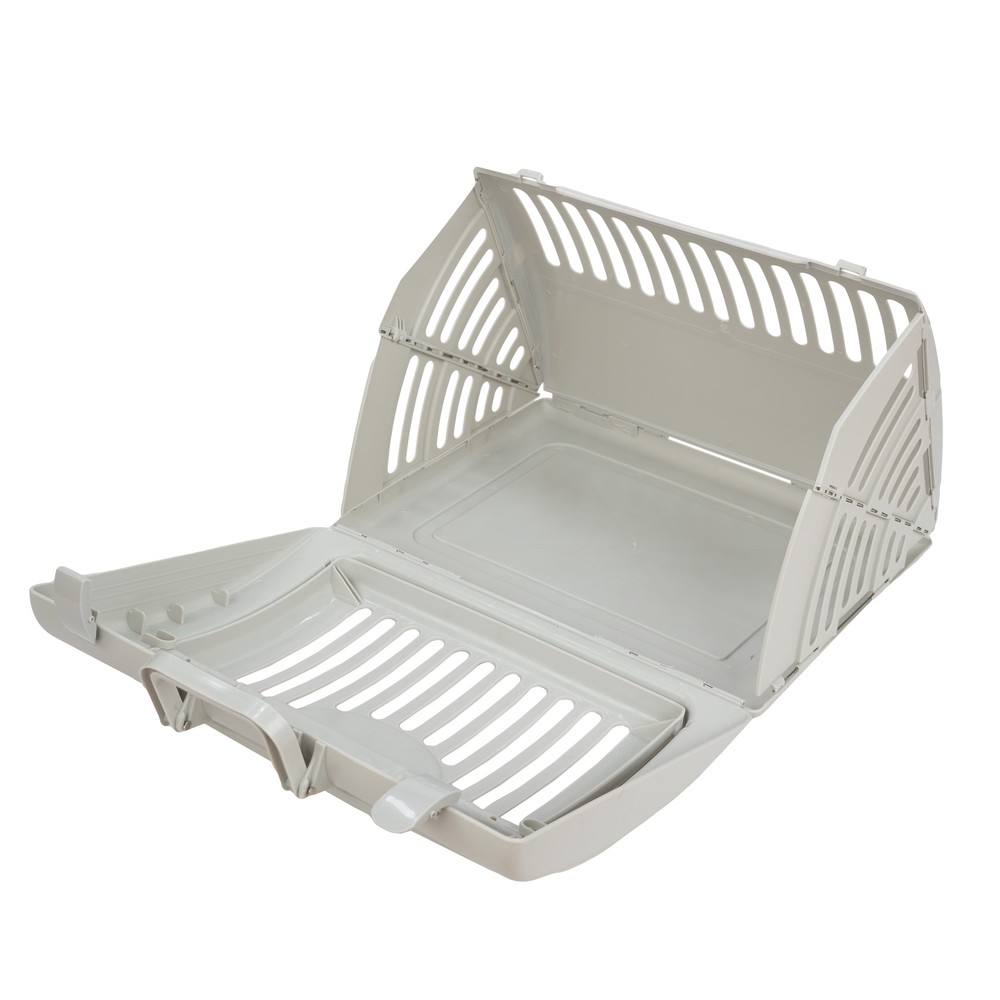 Pets crave a place to call their own so why are so many cat carriers essentially dog crates scaled down? The Vibrant Life plastic gray foldable cat carrier solves the problem with a design focused on keeping cats calm and collected while they're on the go, all while being simple to assemble and stow away when not in use for you. The unique tent-like shape creates a naturally cozy haven for your cat with plenty of grills and vents on all sides so that your pet can feel comfortable surveying their surroundings. It's easy to clean once the trip is over thanks to the door's wide design. A comfortable grip handles make a pleasant experience for you as well. Help your pets live the Vibrant Life! Our products are specially crafted with one goal in mind, seeing your pet at its very best. With a variety of offerings designed to keep animals healthy, happy, and energized, Vibrant Life stands out as the brand that truly puts your pet first. Vibrant Life Foldable Plastic Travel Cat Carrier, Gray, One Size Folds down neatly for storage in your closet or on a convenient shelf, yet set up in a cinch whenever you need to travel with your feline sidekick. it's a quick, cozy carrier for on-the-go The plastic and steel construction offers a long life of use, and the sturdy door has a single-motion door lock – it stays securely shut, but opens easily for you An extra large opening with a removable door makes cats feel comfortable walking into the carrier The unique triangular shape makes for a cozy lounging area for your cat, yet it has plenty of built-in slats and vents so your pet always has a complete, calming view of his surroundings Large opening and sturdy plastic make this carrier easy to clean with a damp cloth, soap, and water This carrier measures: 15.25” L x 18.5” W x 14.25” H 7.0 and holds one or more cats from extra small up to 25 LBS Easy walk-in and out carrier door makes it easy to use as an indoor home and allows your cat to become acclimated to the carrier before traveling The Vibrant Life gray cat carrier is the perfect sanctuary for your pet
