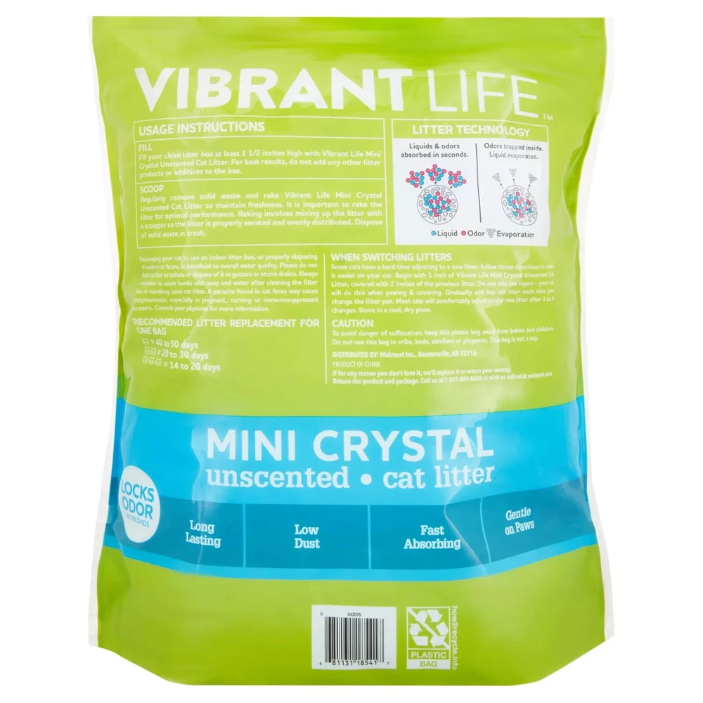 Introducing Vibrant Life Mini Crystal Unscented Cat Litter, perfect for your feline friend's litter box. This product comes in a size of 8 lb and is assembled with care in the United States. The litter is made of high-quality crystals that provide excellent absorption and odor control. With its unscented formula, this litter is ideal for cats who prefer a clean and fresh environment. The product is easy to use and dispose of, making it a convenient choice for any cat owner. It is a must-have to keep your cat's litter box clean and tidy. Order now and provide your furry friend with the best possible litter experience.