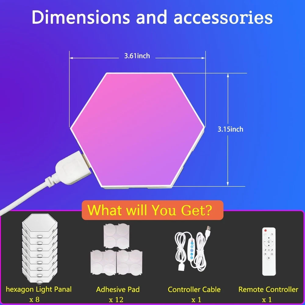 Vibrant RGB Hexagon Wall Lights, 8 Panels with App Control for Indoor Use ‹ › ‹ › ‹ › ‹ › ‹ › ‹ › ‹ › ‹ › ‹ › ‹ › ‹ › Vibrant RGB Hexagon Wall Lights 8 Panels with App Control for Indoor Use Features: Versatile Lighting: This 8-pack of hexagon light panels offers smart RGB LED lighting with app and remote control for customizable ambiance. Modular Design: The modular hexagon tiles can be arranged in various shapes and patterns to suit your space and creativity. Music Sync: Enjoy an immersive experience as the lights sync with your favorite tunes, creating a captivating visual display. Multiple Modes: Choose from various lighting modes, including static colors, dynamic effects, and DIY customizations. Ideal for Spaces: Perfect for living rooms, bedrooms, gaming setups, or as a unique gift for DIY enthusiasts and kids alike. Benefits: Create a personalized ambiance with customizable colors and effects to elevate your space. Transform any wall into a stunning light display that reflects your style and mood. Experience a new level of entertainment with music sync features for parties or cozy evenings. The modular design allows for endless creativity, making it easy to change the look and feel of your room. A wonderful gift that inspires creativity and brings joy to both kids and adults. Why choose our Vibrant RGB Hexagon Wall Lights? Elevate your living space with our Vibrant RGB Hexagon Wall Lights, designed to bring color and creativity to your environment. With smart app control, a modular design for custom arrangements, and immersive music sync capabilities, these lights provide a unique aesthetic experience that adapts to your lifestyle. Whether you want to create an enchanting atmosphere for a gathering or a calming environment for relaxation, this lighting solution excels in versatility. Don't just light up your room; let your walls come alive. Order your set of Vibrant RGB Hexagon Wall Lights today and transform your indoor experience! Shipping Free & Fast Shipping - We offer free shipping to most of the USA with a normal delivery time of 3-7 days. However, due to the current situation, additional delivery time (up to 3 weeks) may be required for some items. Alternative Carriers - We may use alternative carriers (e.g. USPS, FedEx, UPS, etc.) to ensure your package arrives safely and on time. Due to the use of multiple carriers, we are unable to provide a tracking number automatically. Handling Time - Orders are processed and shipped within 1-2 business days of receiving cleared payment. Shipping Restrictions - Shipping to Alaska, Hawaii, Puerto Rico, Guam, and other US territories may incur shipping charges or delivery restrictions. Please contact us before ordering, or your order can be refunded/cancelled. State Restrictions - There may be restrictions based on your state of purchase. For example, certain items may not be shipped to California due to state regulations. Contact for Tracking Updates - If you require tracking updates or have any concerns about the delivery of your order, please feel free to contact us, and we will be happy to assist you. Return 30-Day Hassle-Free Returns - We want you to be completely satisfied with your purchase. If you are not, you can return the item within 30 days of receiving it for a full refund or exchange. Easy Return Process - To start a return, simply contact us and we will provide you with a prepaid return shipping label and detailed instructions. Restocking Fee - There are no restocking fees for returns. However, the buyer is responsible for return shipping costs if the return is not due to a seller's error. Refund Processing Time - Refunds will be processed within 5 business days of receiving the returned item in its original condition. Payment We accept all major credit cards, PayPal, and Apple Pay for your convenience. Your payment information is secure and encrypted to ensure a safe and seamless transaction. Please complete your payment within 3 days of purchase to avoid any delays in shipping. Feedback Your feedback is extremely important to us. We strive to provide the best products and customer service possible. If you are satisfied with your purchase, please take a moment to leave us a positive review. If you have any concerns or issues with your order, please contact us before leaving negative feedback. We are committed to resolving any problems and ensuring your satisfaction. Contact Us If you have any questions or concerns, please feel free to reach out to our customer support team. You can contact us through the eBay messaging system. We are available Monday to Friday, 9:00 am to 5:00 pm EST, and we will do our best to respond to your inquiry within 24 hours. Buy it now and enjoy a pleasant shopping experience! UPC: Not Set Size: 8pack Power Consumption: 10 watts Item Height: Not Set Lumens: 2700 lumen Unit Quantity: 8 Occasion: Multipurpose Features: RGB,Remote Controlled,Music Sync,DIY Customizations,Multiple Modes Light Color: Multicolor Control Style: App Control,Remote Control Department: Unisex Baby & Toddler,Kids,Teens,Adults Theme: Not Set Room: Bedroom,Living Room,Gaming Room Material: Plastic Character: Not Set Labels & Certifications: Not Set Brand: Unbranded Type: Wall Light Lighting Technology: LED Light Shape: Hexagon Sensor Type: Light Installation Area: Indoor Color: Multicolor Cord Color: Multicolor Power Source: Corded Number of Settings: Not Set LED String/Strip Type: Not Set Energy Star: Not Set MPN: Not Set EC Range: Not Set LED Chip Code: Not Set Voltage: 5 V Output Voltage: Not Set Character Family: Not Set IP Rating: Not Set Manufacturer: Not Set Amperage: Not Set Style: Modern Country/Region of Manufacture: Not Set Number of Lights: 8 Color Temperature: Not Set Bulb Life Hours: Not Set Model: Not Set Unit Type: lb