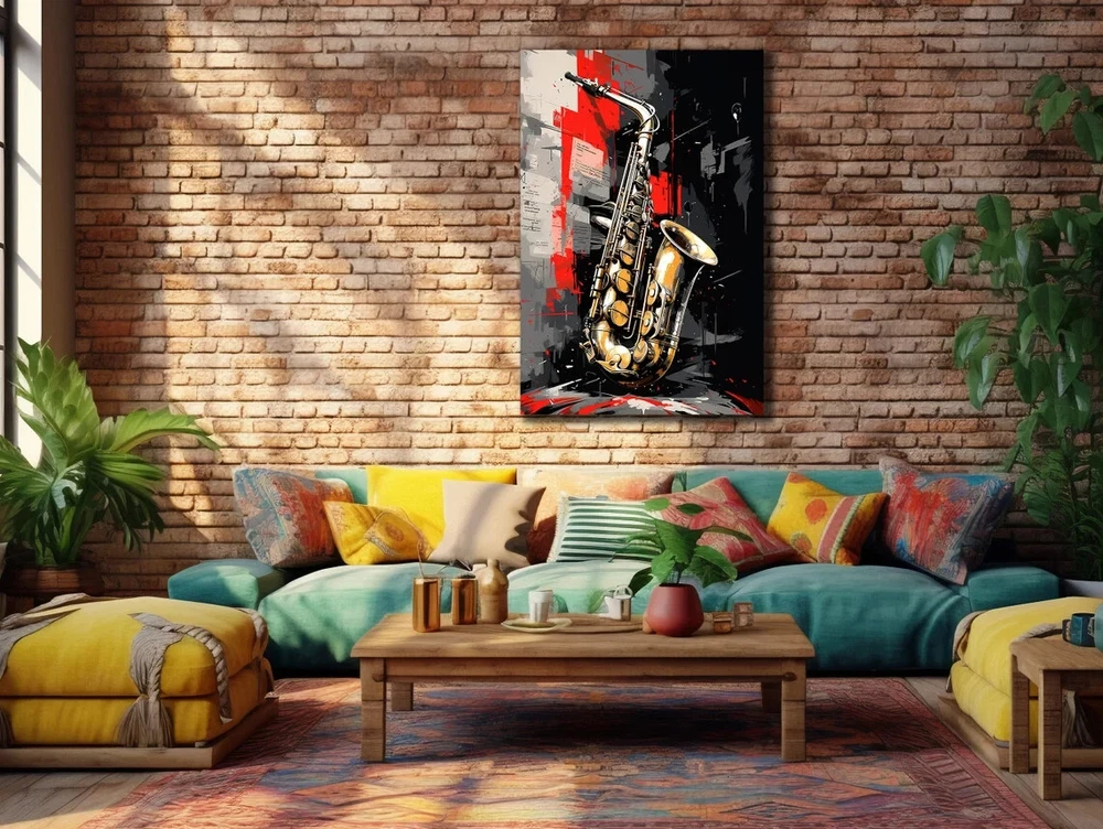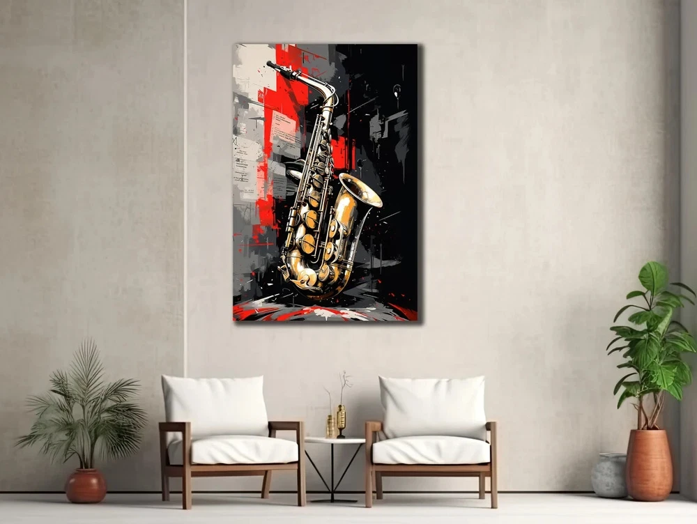 Vibrant Saxophone Abstract Music Paint Unframed Canvas Print Australian Wall Art