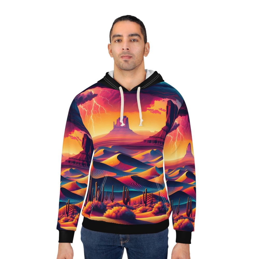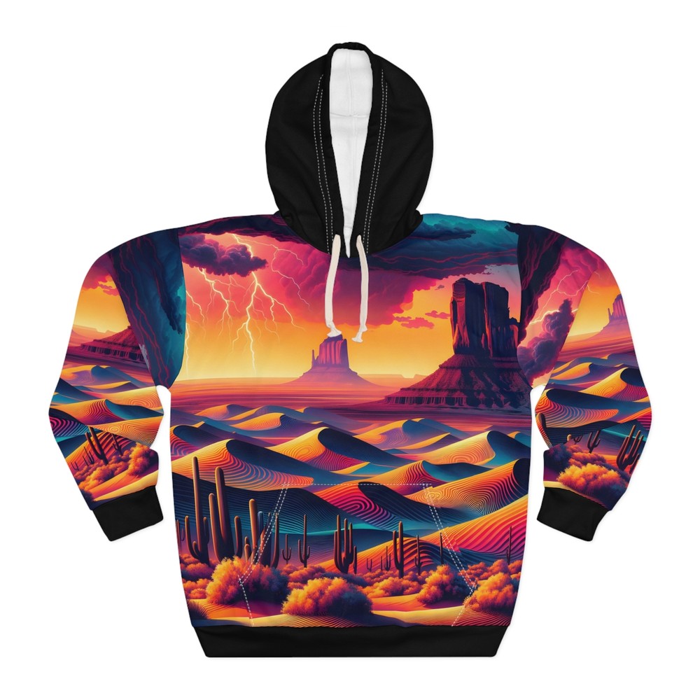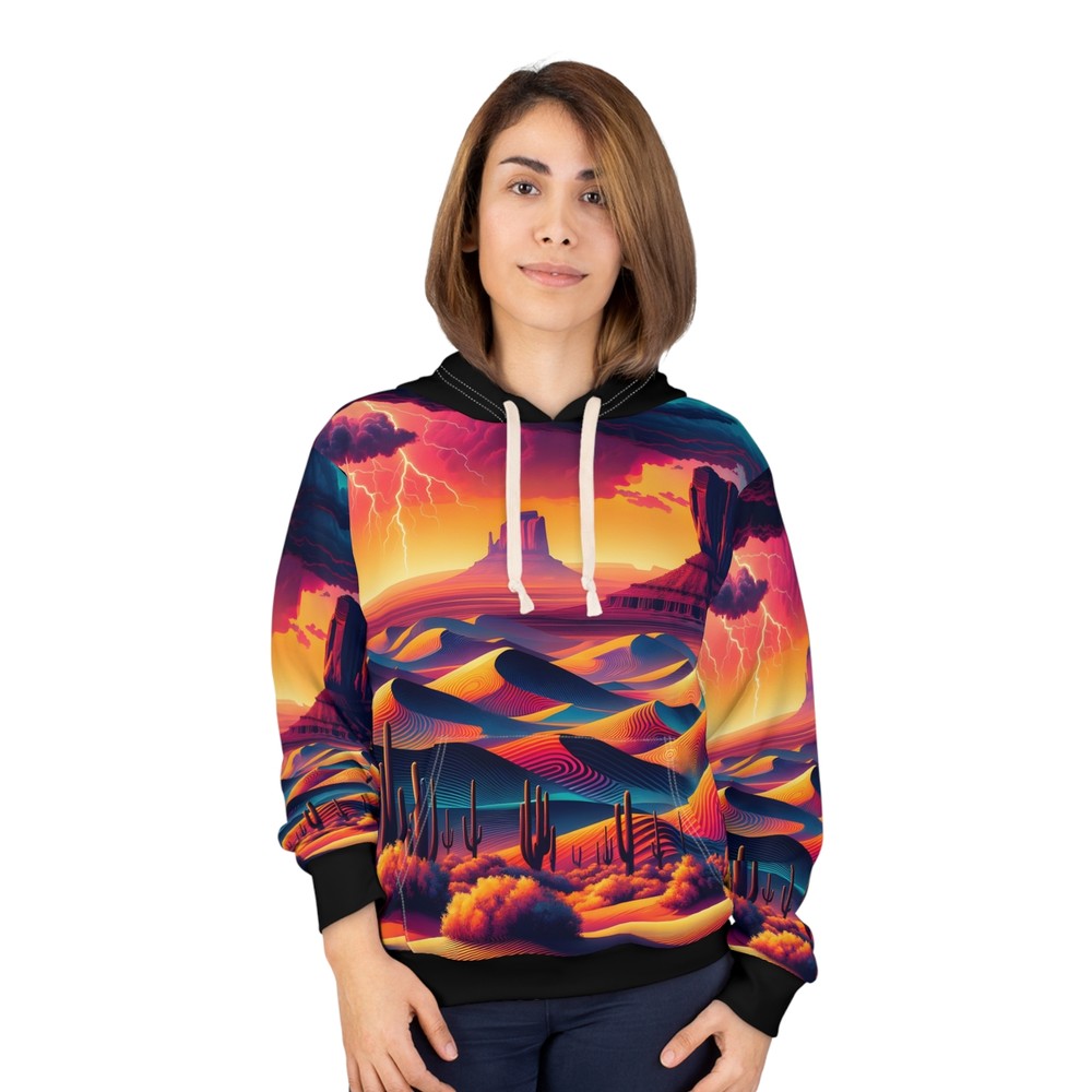 Embrace the spirit of the Southwest with our Vibrant Desert All-Over Print Hoodie! This unisex pullover features mesmerizing abstract patterns that capture the essence of the desert landscape. Made from ultra-soft fabric, it offers comfort and style for any occasion. Stand out and express your unique vibe today! - Made of 100% durable polyester - Medium weight fabric with a classic fit - Tumble dry: low heat - Machine wash: cold (max 30C or 90F) XS S M L XL 2XL Length, in 25.00 26.61 27.64 29.25 30.24 31.89 Width, in 20.00 21.50 22.99 24.49 26.50 28.50 Sleeve Length, in 23.86 24.25 24.88 25.39 25.87 26.38