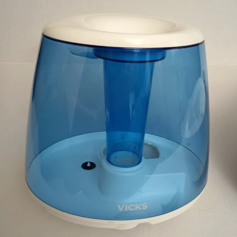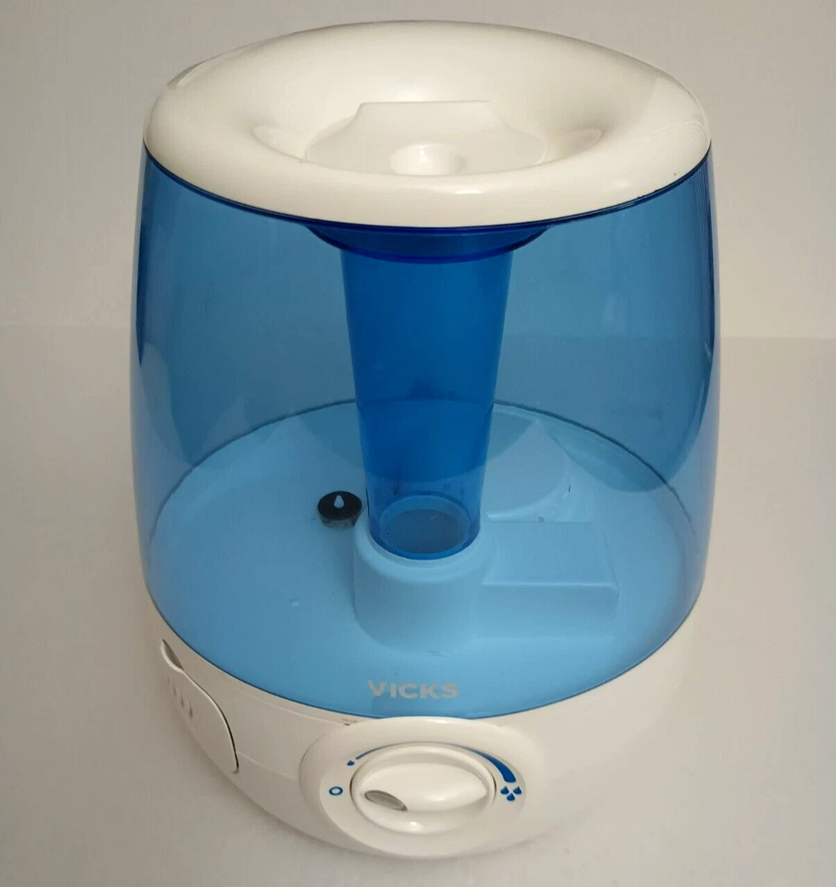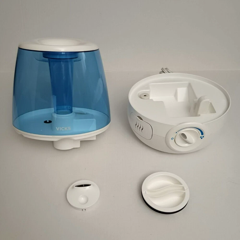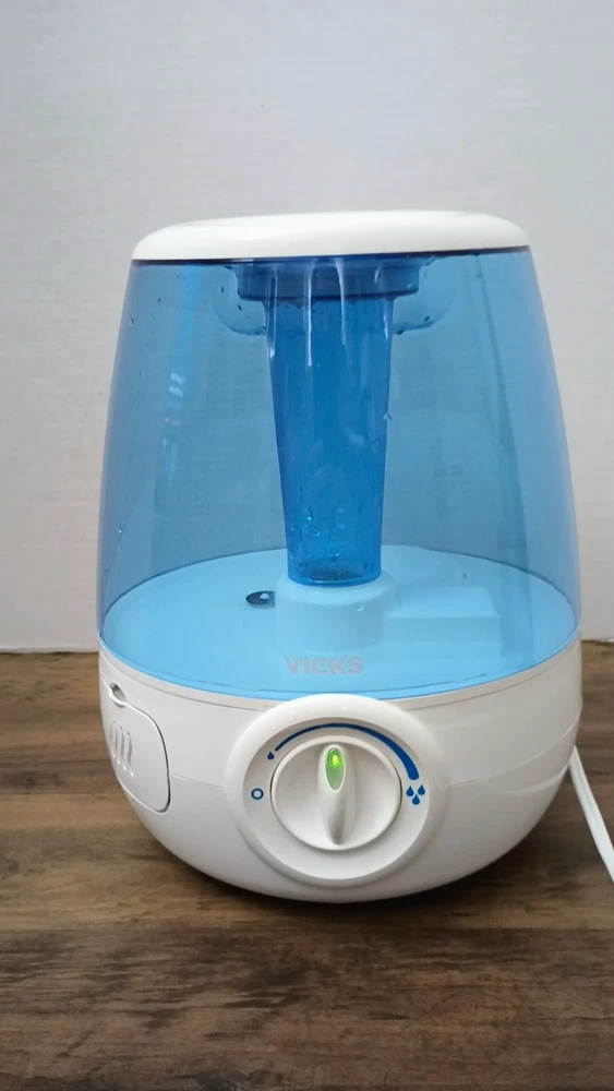 Vicks Filter-Free 1.2 gal. Cool Mist Humidifier, V4600, White - Pre-owned With a 1.2 gallon tank capacity, it is perfect for providing cool mist humidification. Adjustable humidity control makes it a great choice for those looking to add a touch of comfort to their home. Quiet operation allows you to go about your business without distractions from noise. This tabletop humidifier is portable and corded, making it easy to use anywhere. The Vicks V4600 also features an aroma diffuser, allowing you to add your favorite essential oils to the air. It features a nice white and blue color scheme. NOTE: Please see the images to verify your purchase. From a smoke-free, pet-free home. Please contact us if you need additional images or information to make your purchase. If you are happy with your transaction, please leave us a Positive Feedback. If you have any problems with your order, please contact us.