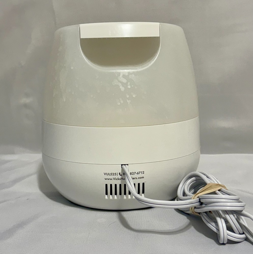Number of Speeds: Variable Manufacturer Warranty: Yes Warranty - Parts: 2 year limited warranty Voltage: 120 V Type: Mini MPN: VUL525W Brand: Vicks UPC: 328785006520 Material: Plastic Coverage: More Than 215 sq ft Humidification Method: Cool Mist Tank Capacity: 0.5 gal Room: Any Room, Bedroom, Home Office/Study Warranty - Labor: 2 year limited warranty Color: White Seller Notes: “Used, mechanically sound” Recommended Room Size: Small Power Source: Electrical gtin13: 328785006520 Features: Adjustable Humidity Control, Aroma Diffuser, Quiet Operation