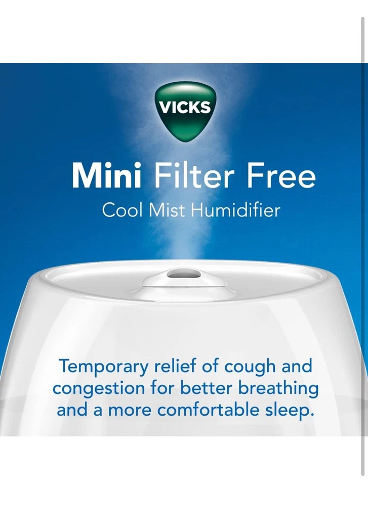 Vicks Mini Filter Free Cool Mist Humidifier, Small Room – Variable White . Condition is New. Shipped with USPS Ground Advantage.