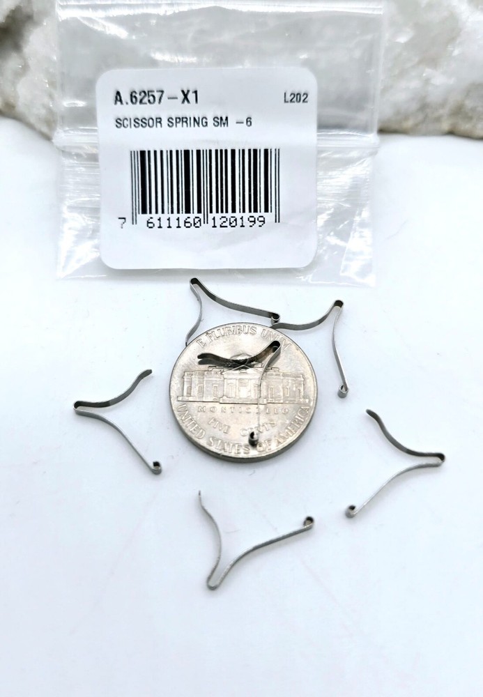 6-Pack Small Replacement Scissor Springs — Part Number A.6257 Restore the function of your Swiss Army Knife scissors with this handy 6-pack of Swiss-made replacement scissor springs . Made from durable stainless steel, these springs are designed specifically for 58 mm (2.25") pocket knives, keeping your trusted tool in top shape. ✦ Key Features ✅ Perfect Replacement Pack: Ideal for repairing and refreshing your pocket knife scissors ✅ Swiss Made Quality: Precision-crafted scissor springs made from high-grade stainless steel ✅ Compatible Fit: Designed to fit 58 mm (2.25") Swiss Army Knives ✅ Durable & Long-Lasting: Maintains proper tension and smooth operation ✅ Easy Installation: Simple to replace—get your scissors working like new in minutes Bring your Swiss Army Knife back to life—order this 6-pack of genuine-style replacement scissor springs today! Experience the reliability and precision of Victorinox with this 6-piece scissor spring replacement part, model A.6257.X1. Crafted in Switzerland, the item reflects the outstanding quality and durability associated with the Victorinox brand. The silver color complements the sleek design of the scissors, ensuring that your grooming tools are not only functional but also aesthetically pleasing. Ideal for professionals and DIY enthusiasts alike, this replacement part is engineered to meet the high standards of Victorinox's A.6257.X1 model. Whether you're maintaining your own scissors or replacing parts for a comprehensive toolkit, this set provides the essentials for keeping your scissor blades sharp and ready for any task.
