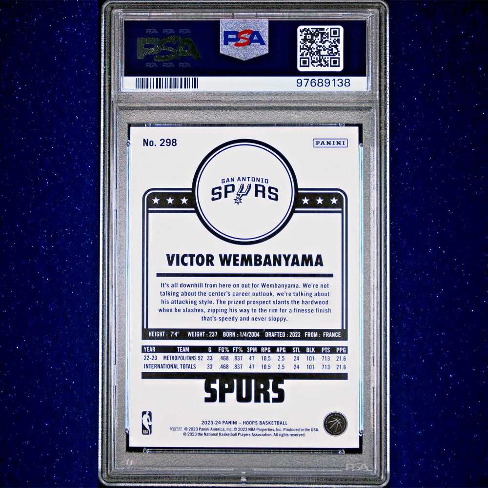 Victor Wembanyama 2023 Hoops #298 Spurs RC Rookie PSA 10